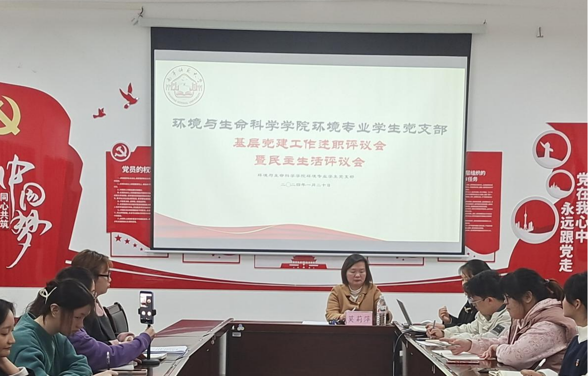 环境专业学生党支部于2024年1月20日下午在地海楼B508召开组织生活会。参会人员有环境专业学生党支部书记莫莉萍、党支部全体党员以及部分班级学生代表。本次会议由党支部副书记陈秋灵主持。