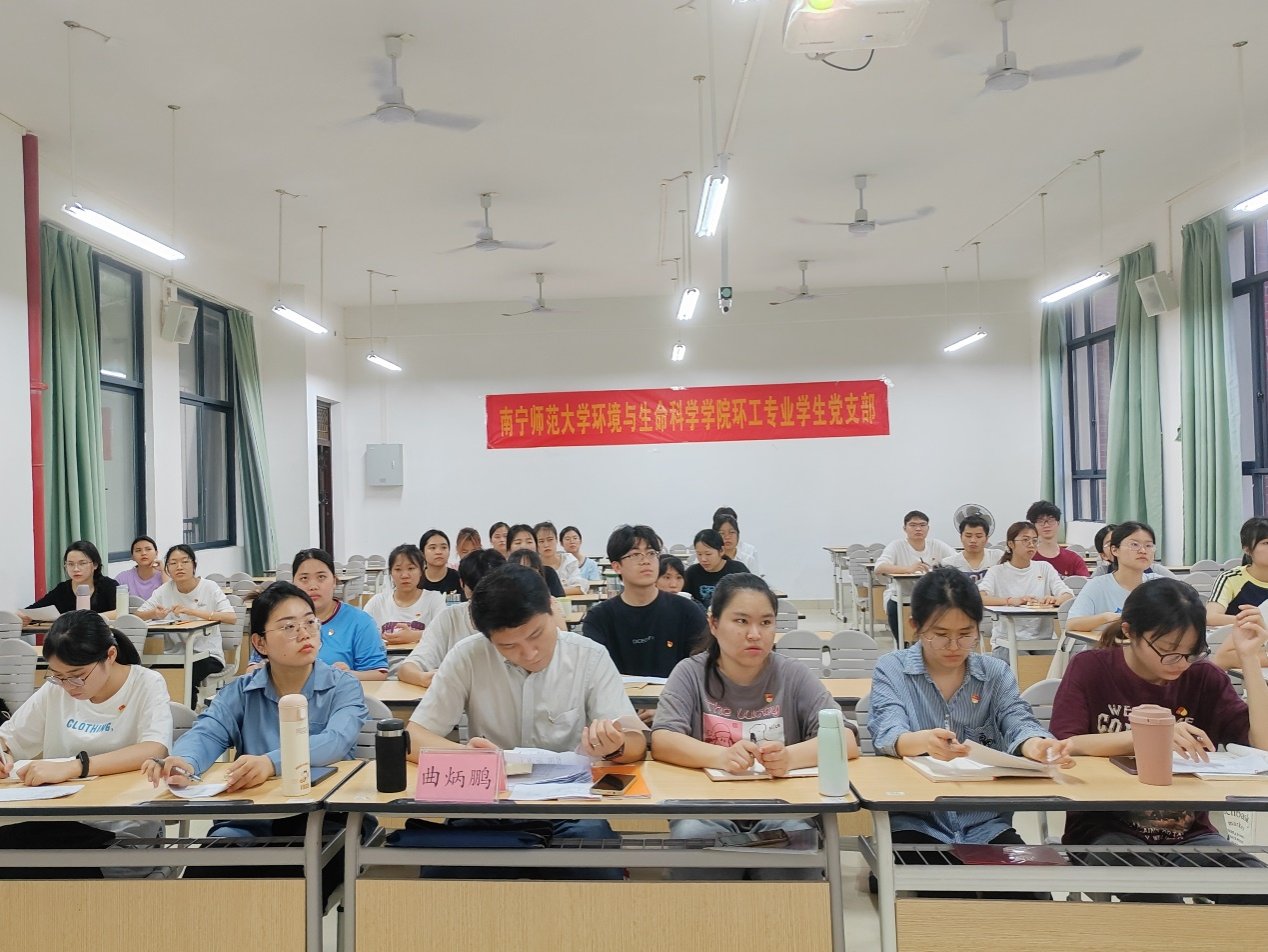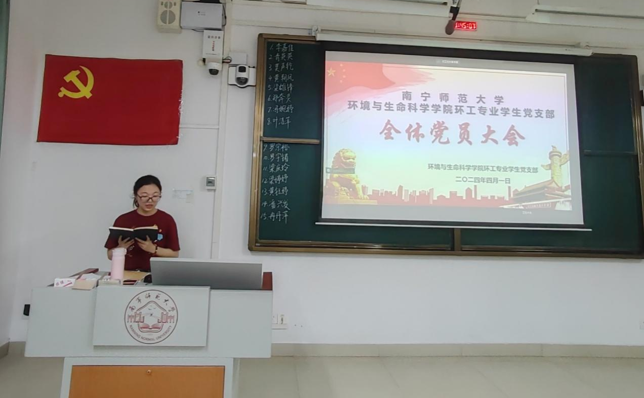 环工专业学生党支部于2024年4月1日晚在武鸣校区1号教学楼219教室以线上线下相结合的方式召开全体党员大会。参会人员有动漫18