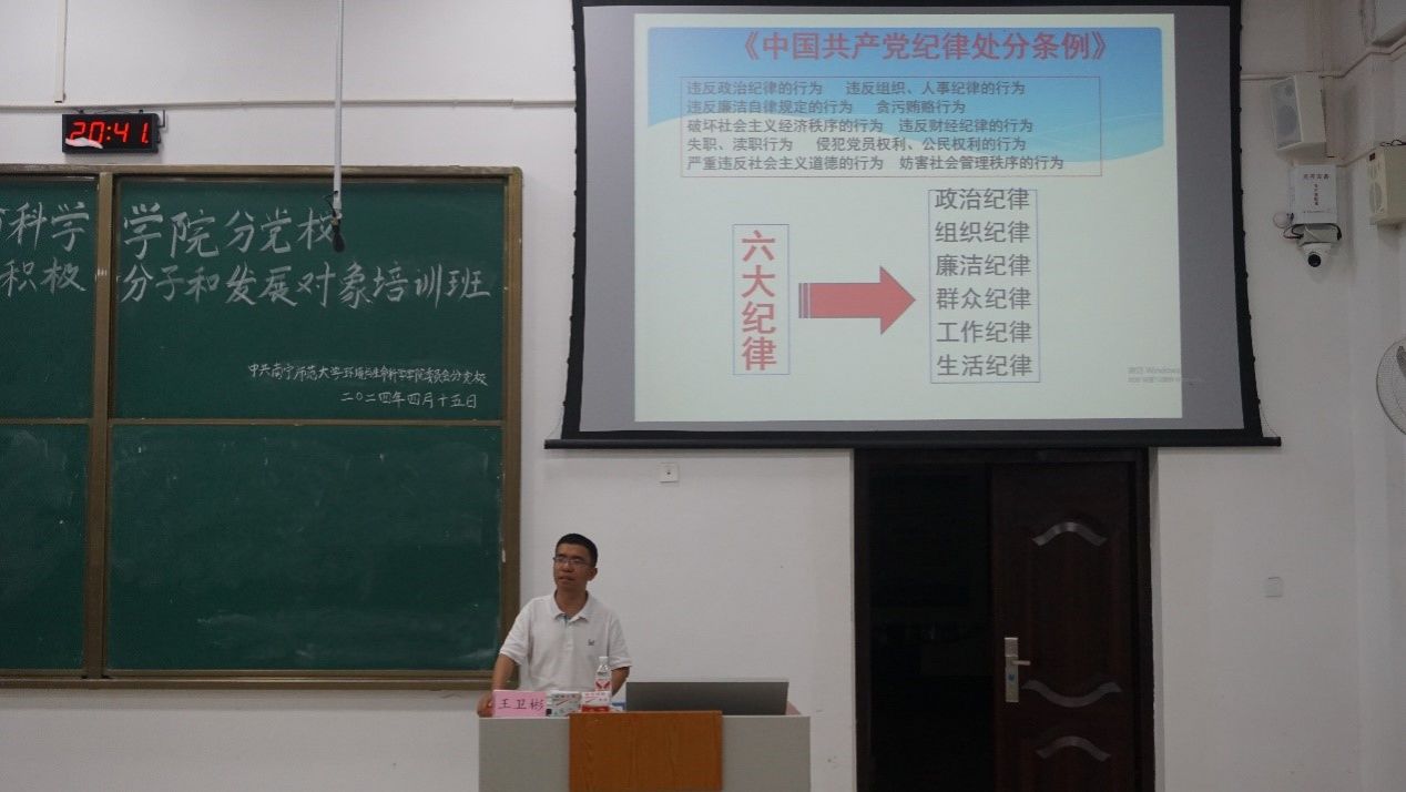 本次培训会使同学们强化了党的纪律教育,规范了入党积极分子和发展对象的行为。