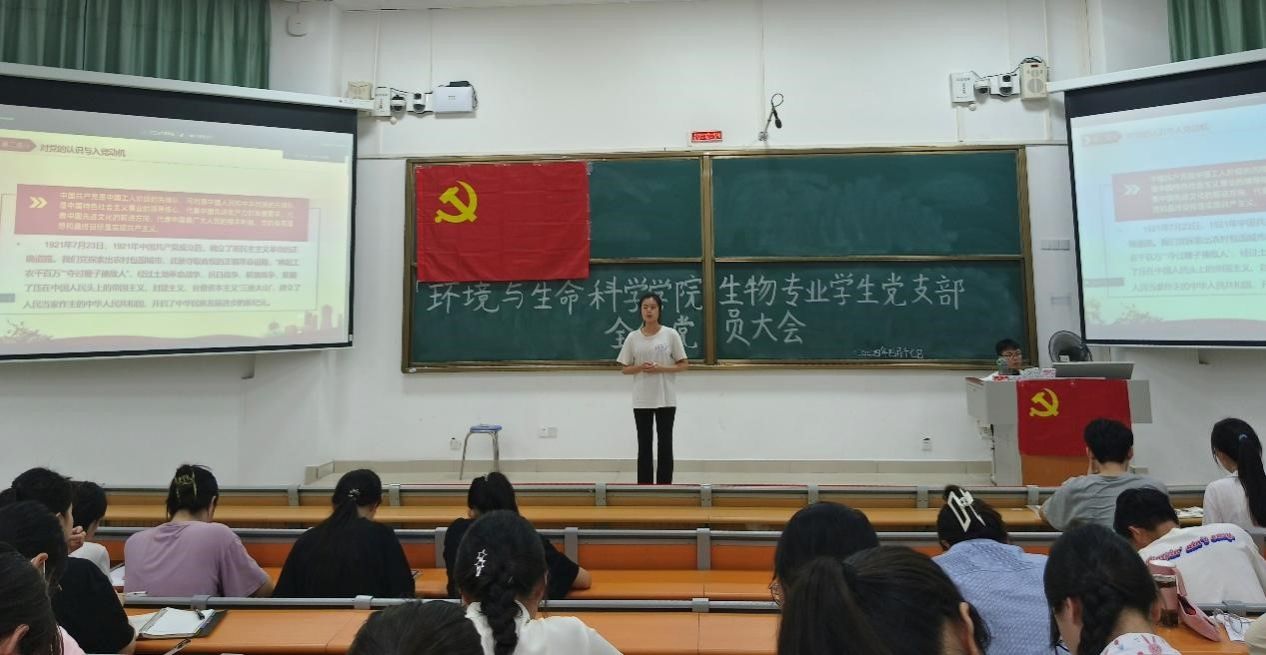 生物专业学生党支部于4月17日及18日19:00在武鸣校区1号教学楼215教室召开专题会议。本次会议采取线上线下相结合的方式,参会人员为生物专业学生党支部全体党员、2021及2022级拟发展对象。