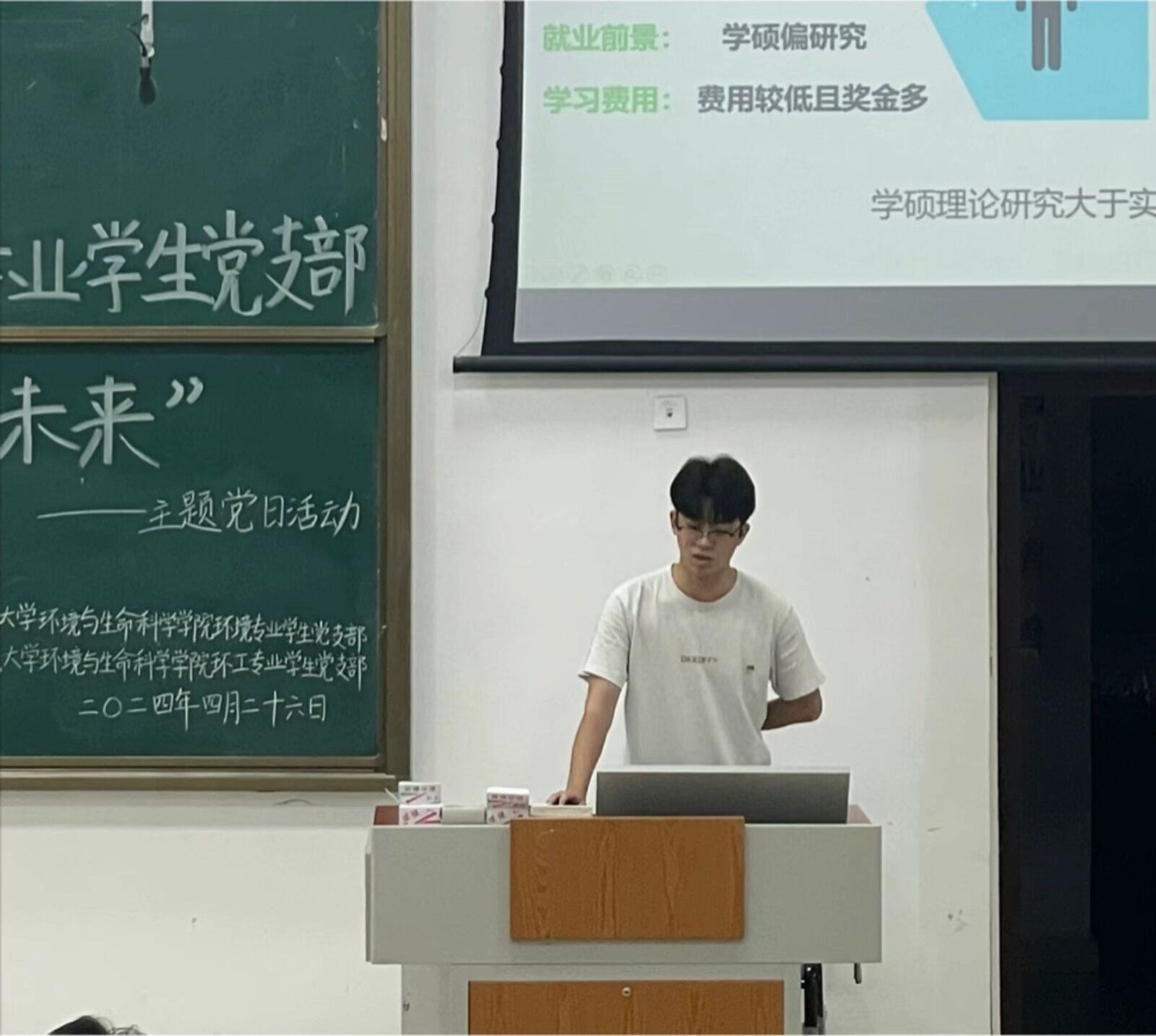 环工专业学生党支部于4月26日晚在地海楼B109教室开展“研途修筑理想,筑梦公考未来”主题党日活动。与会人员有环境专业学生党支部书记莫莉萍、环工专业学生党支部书记曲炳鹏,环境科学与环境工程专业2020级、2021级及2022级部分学生。