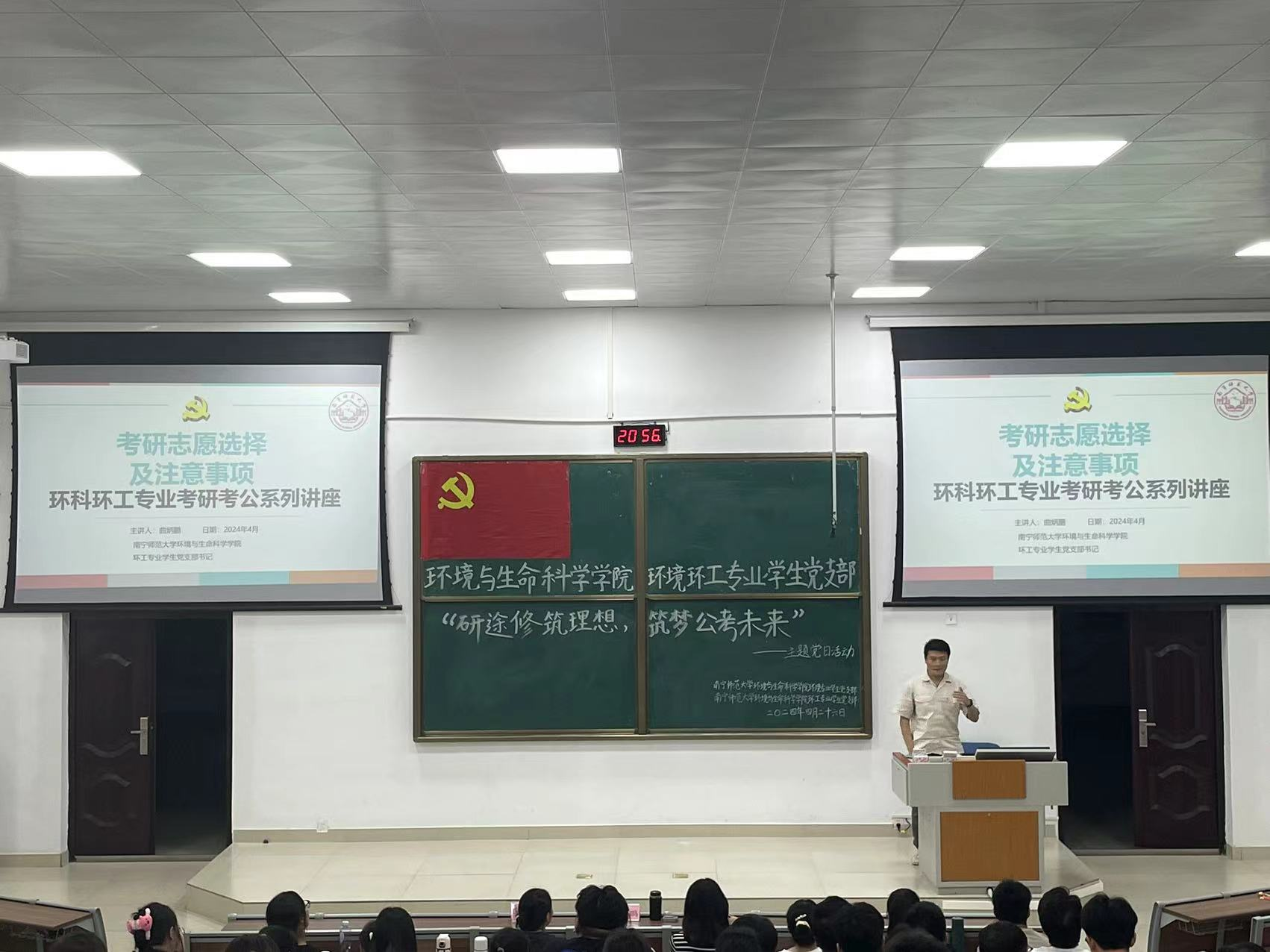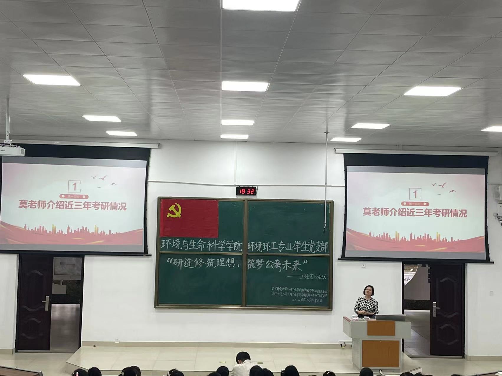 最后,曲炳鹏老师向同学们介绍了与环境环工专业相关的考研方向与最新的考研政策,鼓励同学们根据自己的兴趣与学习能力综合选择想要报考的学校和专业,并提醒同学们充分利用学院资源,向已经上岸的学长和学姐询问成功的学习经验与方法。