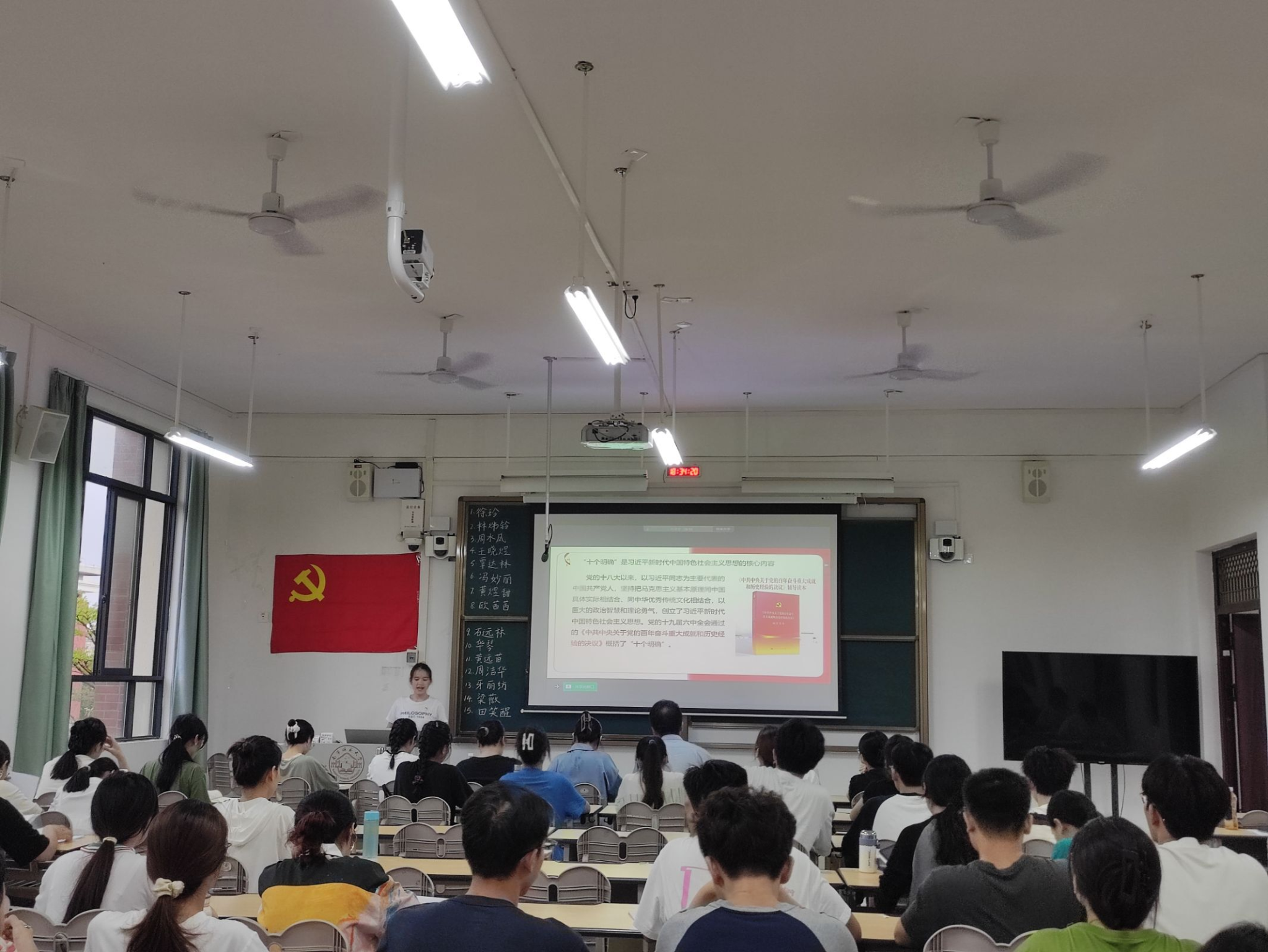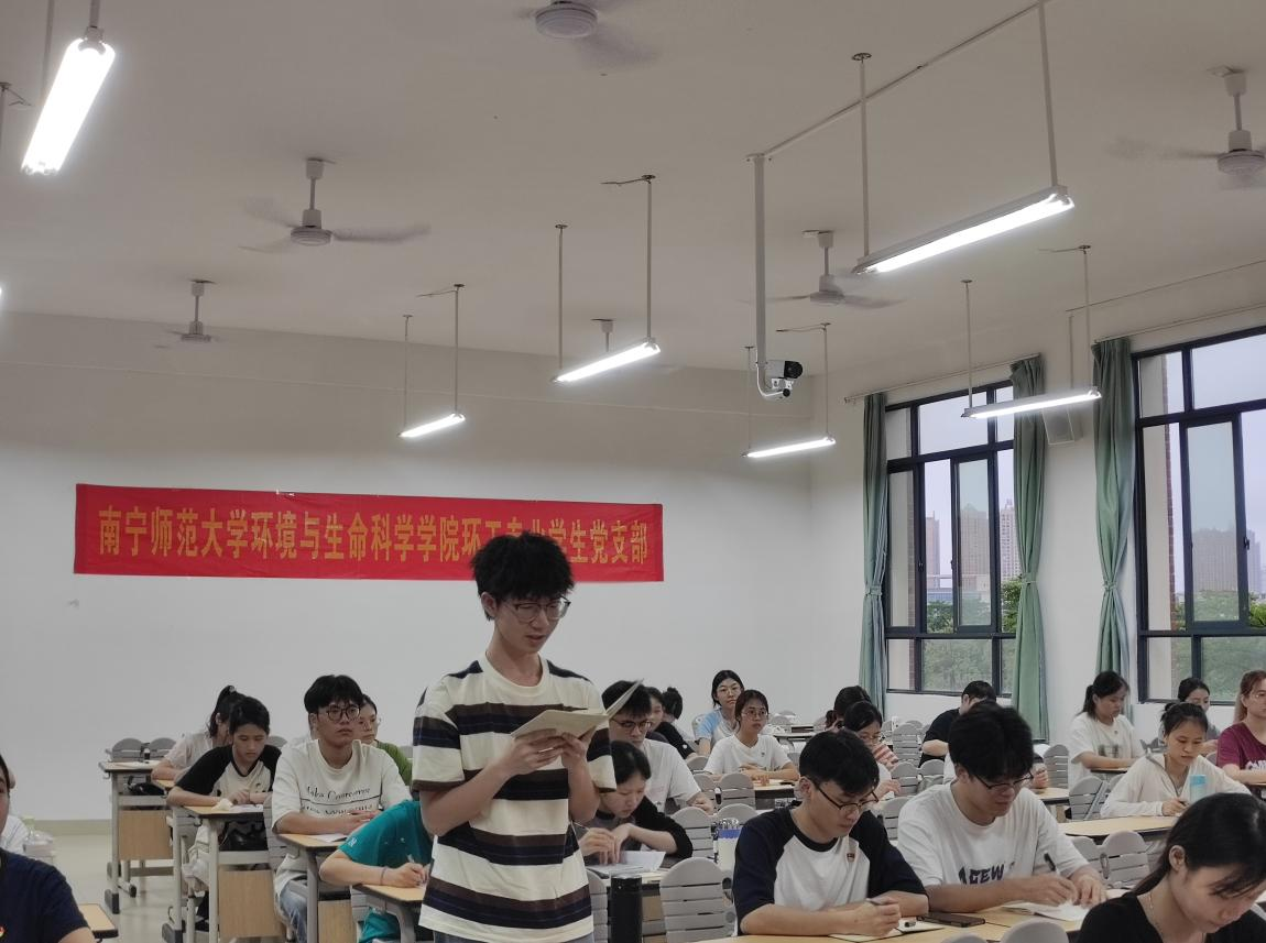 环工专业学生党支部于6月3日晚在武鸣校区1号教学楼218教室开展学习贯彻习近平新时代中国特色社会主义思想主题教育党课,参会人员有动漫18