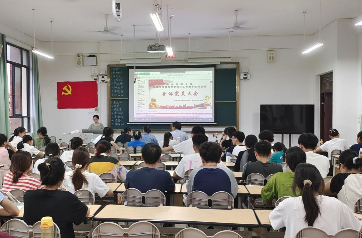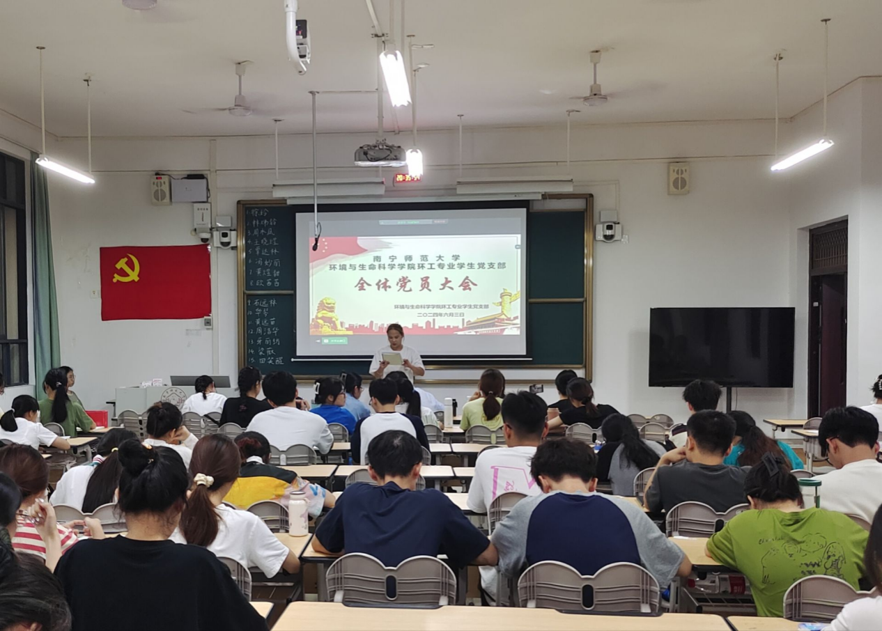 环工专业学生党支部于6月3日晚在武鸣校区1号教学楼218教室召开全体党员大会。会议主要议题是讨论徐玲等15名预备党员转为正式党员的问题,参会人员有动漫18