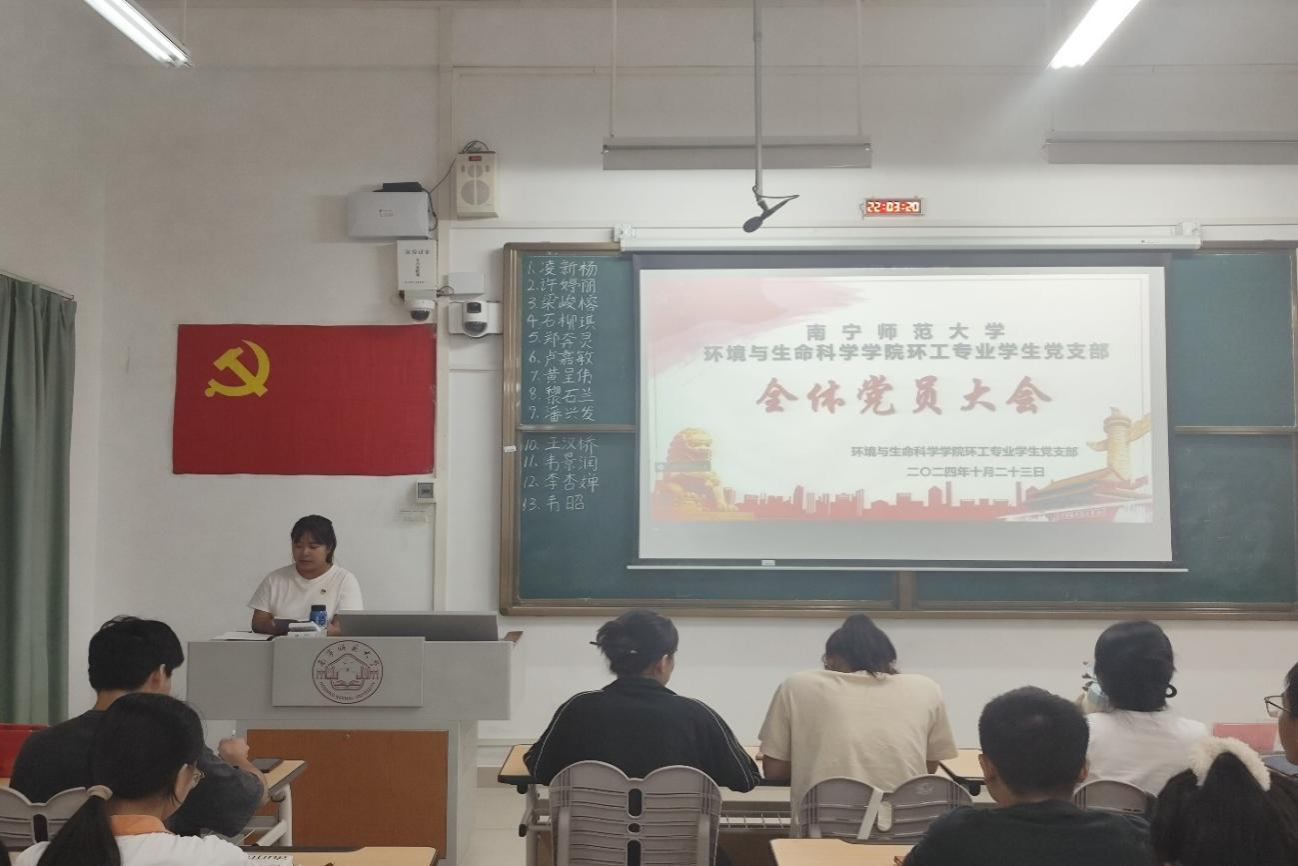 环工专业学生党支部于10月23日晚在武鸣校区1号教学楼117教室召开了预备党员接收会议。会议主要议题是讨论凌新杨等13名发展对象接收为预备党员的问题。学院环工专业学生党支部书记曲炳鹏,全体党员以及13名发展对象参与了此次会议。