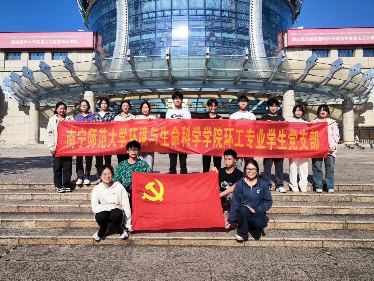 环工专业学生党支部于11月10日在广西民族博物馆和邕江沿岸公园开展了“担当时代使命,共筑强国理想”主题党日活动。环工专业学生党支部部分党员和入党积极分子参与了此次活动。