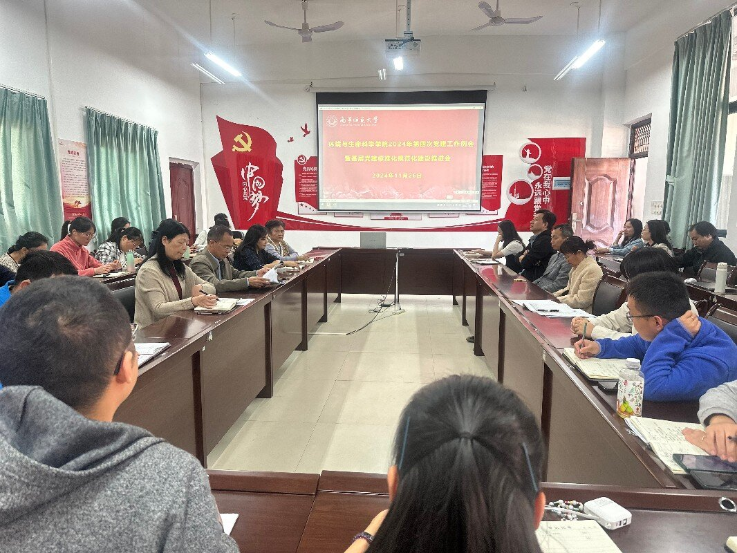 在武鸣校区地海楼B508室召开了该院2024年第四次党建工作例会暨基层党建标准化规范化建设推进会议。会议由学院党委副书记(主持党委工作)韦东林主持,学院党委委员及各党支部支委参加了会议。