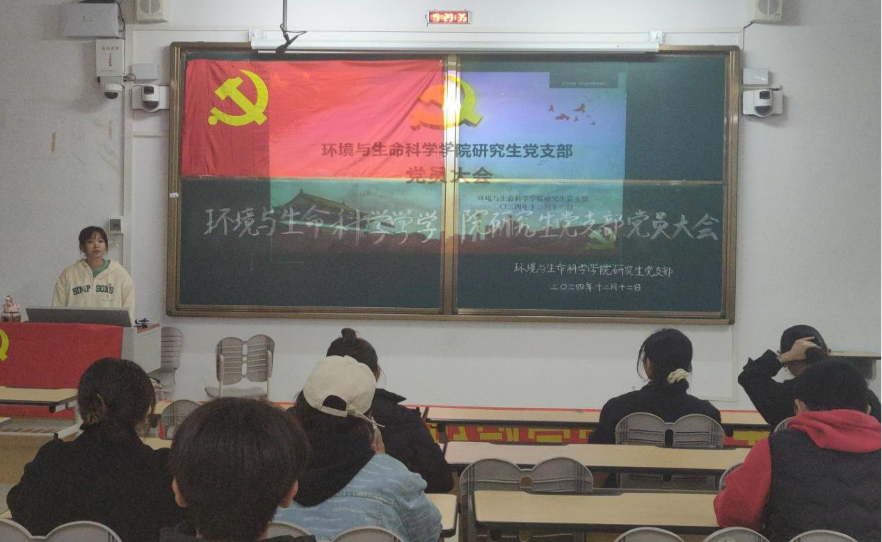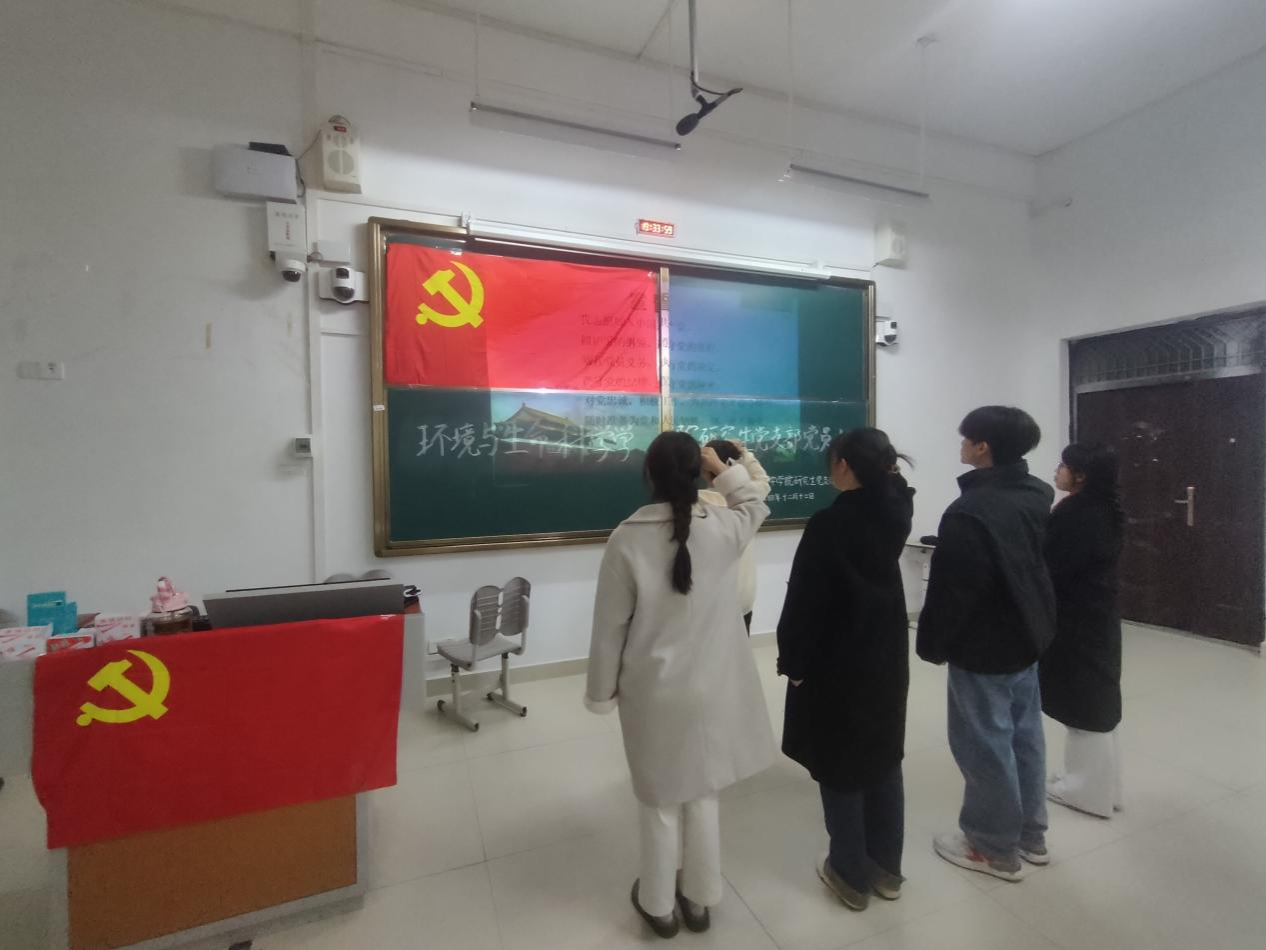 党支部在武一教学楼117教室召开了入党宣誓会议。本次会议采取线上线下结合的方式进行,旨在欢迎新一批研究生党员同志的加入,引导全体党员回顾党史、坚定理想信念。会议由党支部书记潘艳桃主持,全体党员参加会议。