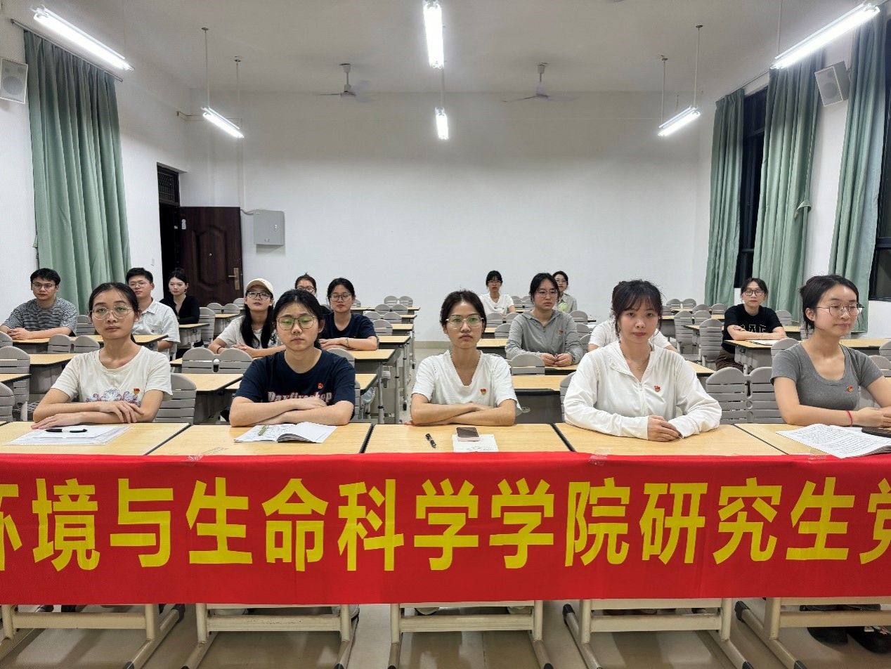 研究生党支部在武鸣校区1号教学楼213教室召开全体党员大会,会议以线上线下相结合的方式进行,主要议题是讨论接收许秋怡同志为预备党员。本次会议由支部书记潘艳桃同志主持。