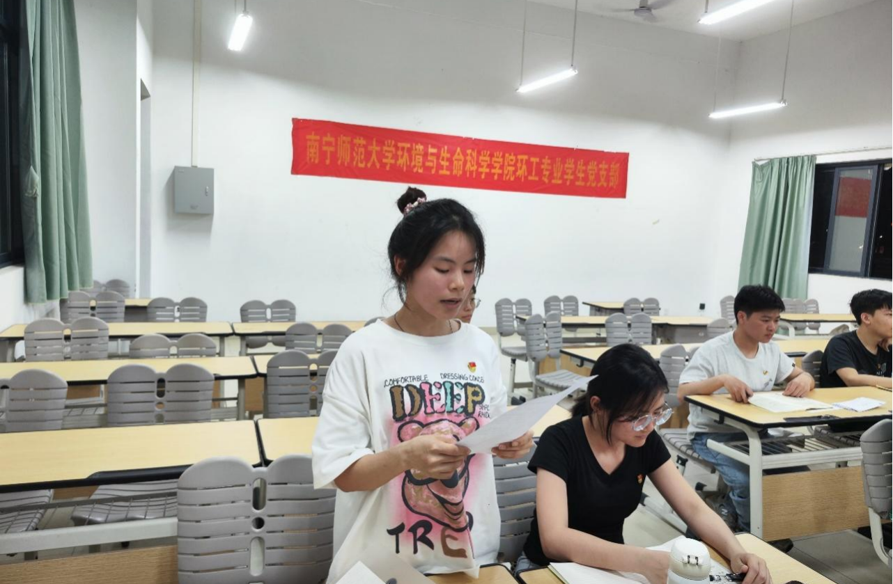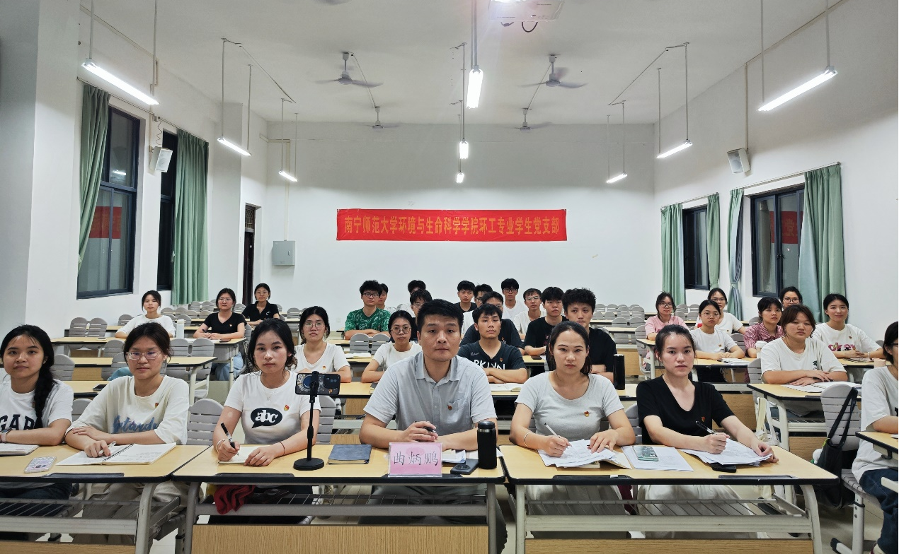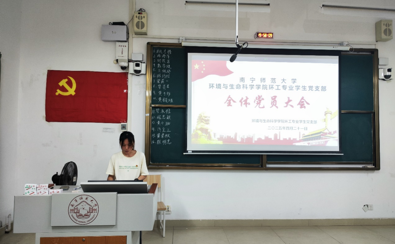 环工专业学生党支部于4月21日晚在武鸣校区1号教学楼119教室以线上线下相结合的方式召开全体党员大会。主要议题为讨论确定姚才腾等16名入党积极分子列为发展对象事宜。
