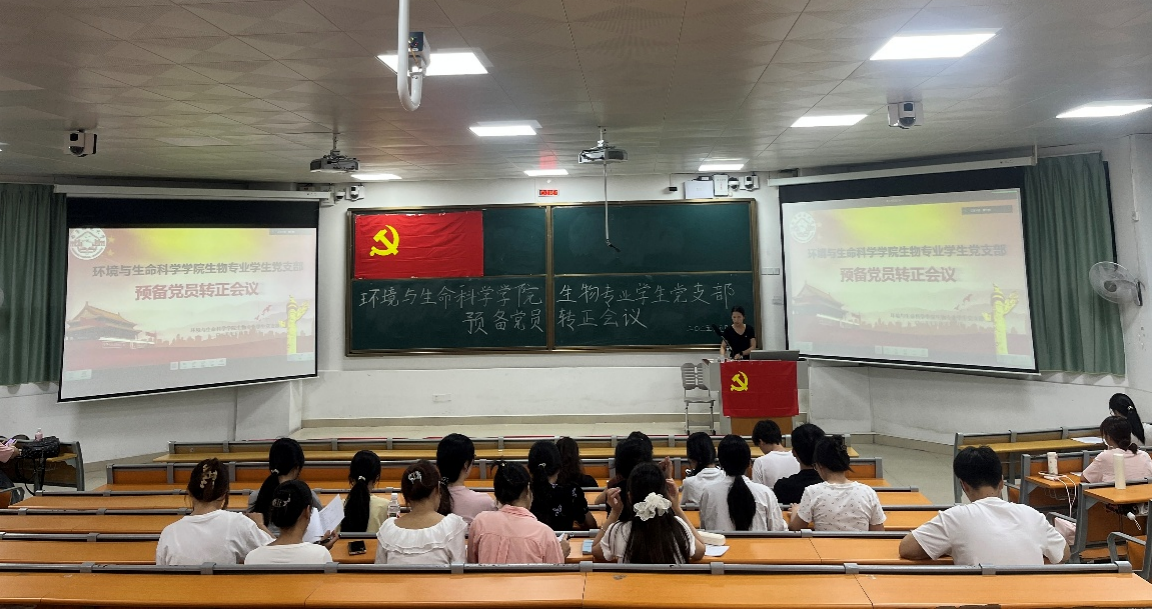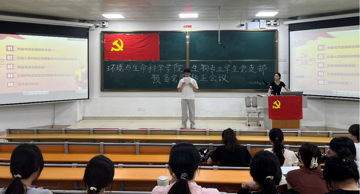 生物专业学生党支部于2025年5月23日在武鸣校区1号教学楼115教室召开预备党员转正会议。