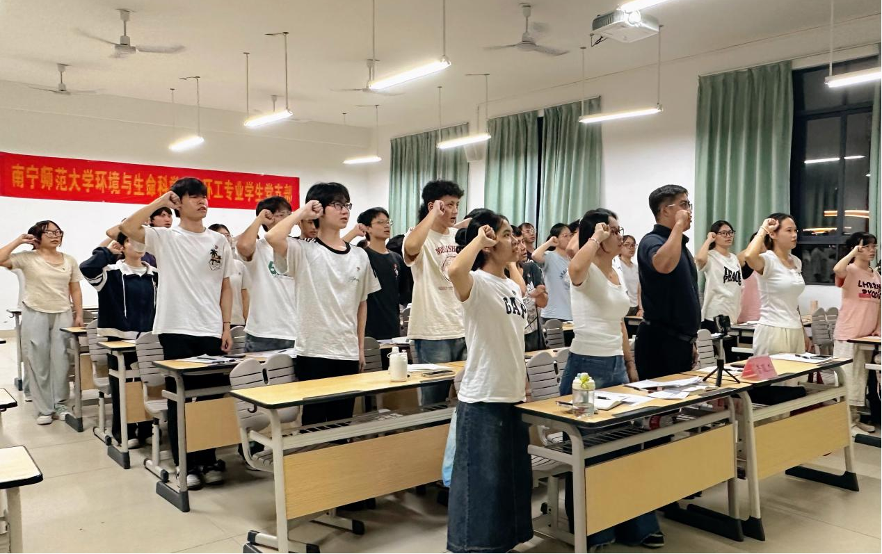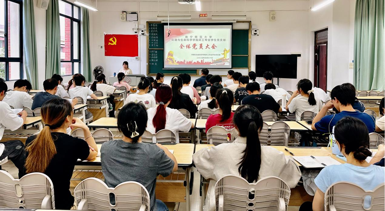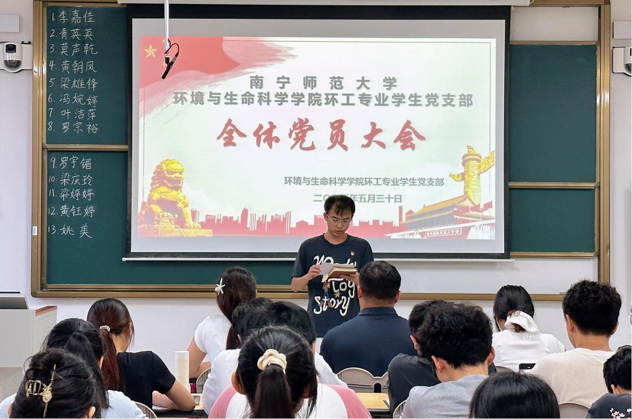 环工专业学生党支部于5月30日晚在武鸣校区1号教学楼220教室召开党员大会,讨论李嘉佳等13名预备党员转正事宜。党支部书记普胤杰主持会议。