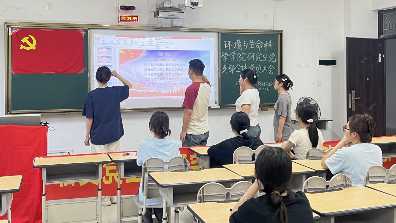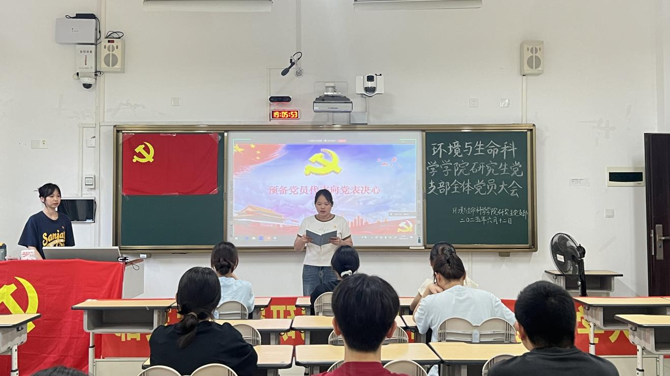研究生党支部于6月12日在武鸣校区1号教学楼106教室召开预备党员入党宣誓会议。本次会议由支部书记潘艳桃主持,支部全体党员和预备党员参会。