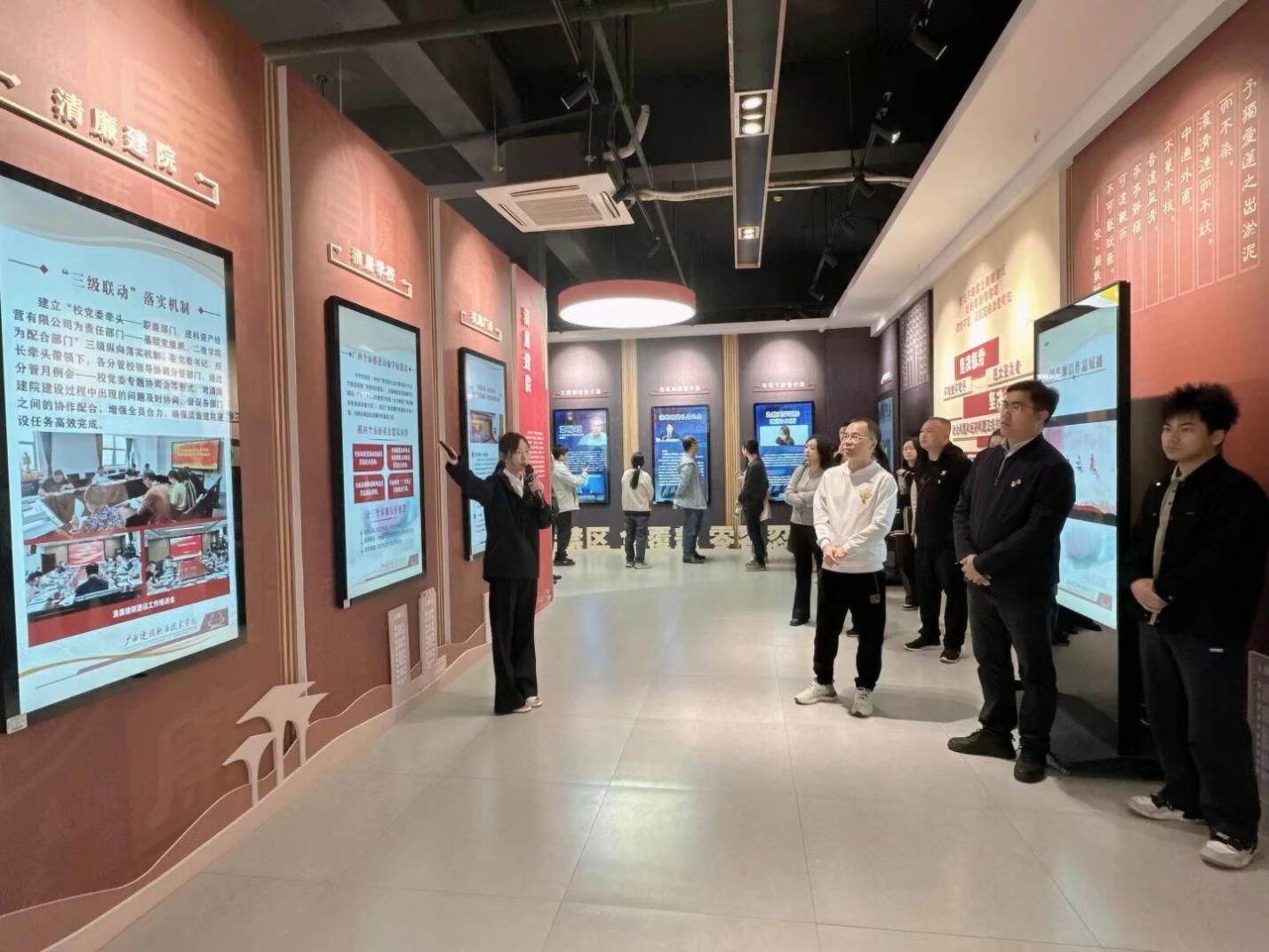 廉洁教育基地设有宣传展示、学习交流、教育培训三大功能区。宣传展示区涵盖“高屋建瓴”、“党的纪律”、“警钟长鸣”、“清廉建院”、“全面从严治党”和“育廉新风”六大版块。在基地讲解员的引导下,支部党员依次参观了宣传展示区的各大主题板块。参观过程中,党员同志们认真聆听讲解,不时驻足观看,深入交流体会。大家深刻认识到,全面从严治党永远在路上,党的纪律是不可触碰的“高压线”。一个个鲜活的案例,警示着每一位党员必须时刻保持清醒头脑,绷紧廉洁自律之弦,做到知敬畏、存戒惧、守底线。