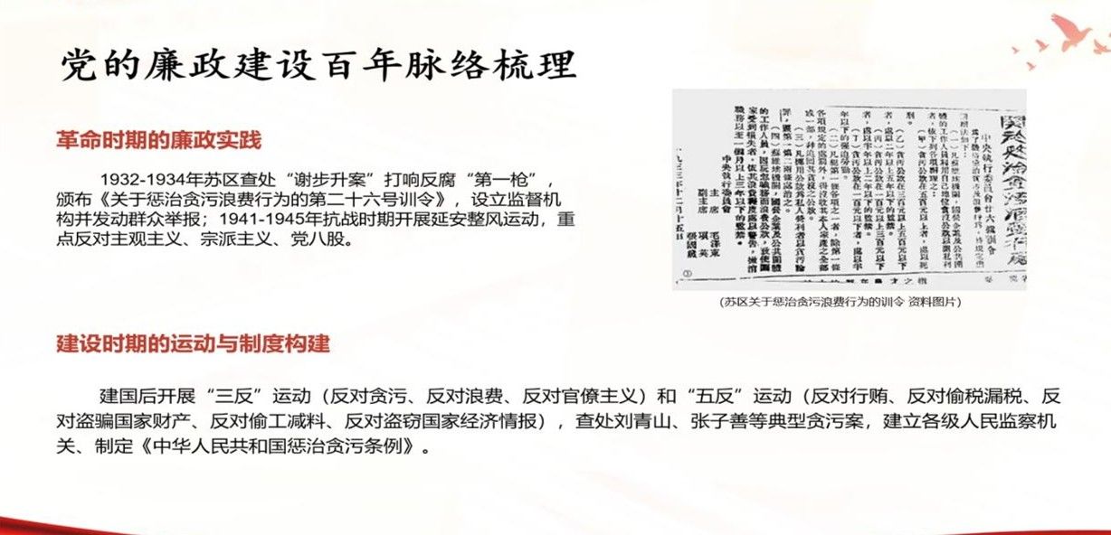 党课围绕清廉廉政的核心内涵与青年实践展开,刘雅楠首先结合党史脉络,和参会党员共同梳理党了的廉政建设百年历程。从苏区时期颁布《关于惩治贪污浪费行为的第二十六号训令》到新时代“三不腐”机制建设,都强调了廉政建设是党自我革命的关键抓手。