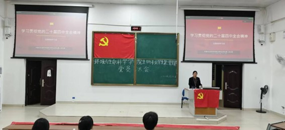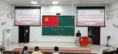 生物专业学生第二党支部在地海楼B109教室顺利开展党员大会。本次会议采取线上线下相结合的方式,由党支部书记刘雅楠主持,党支部全体党员参会。