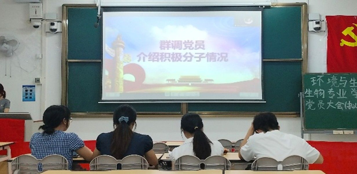 生物专业学生第二党支部于2026年4月22日,在武鸣校区1号教学楼118教室以线上线下相结合的方式召开全体党员大会。本次大会主要围绕拟发展对象情况介绍、开展党员评议相关事宜展开。
