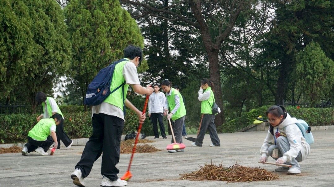 活动分为陵园清扫和烈士祭拜两个环节。在陵园清扫过程中,志愿者们分工协作,认真清扫园区道路、清理绿化带垃圾,并仔细擦拭烈士墓碑上的灰尘。大家以实际行动表达对革命先烈的崇高敬意,经过共同努力,陵园焕然一新。