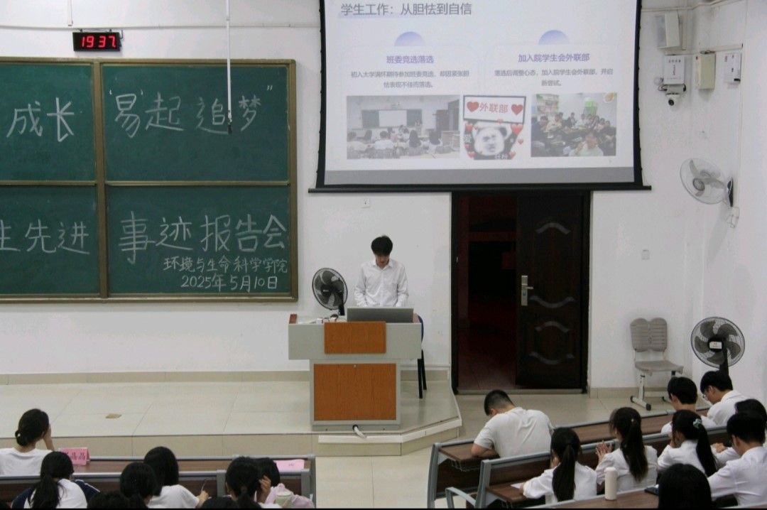 “大学生事迹报告会”在武鸣校区地海楼B109教室举行。本次报告会由傅安庆、石海月和蒋琳华3位优秀学子分享其大学四年的奋斗故事,引导在校生以榜样为镜,勇担时代使命。