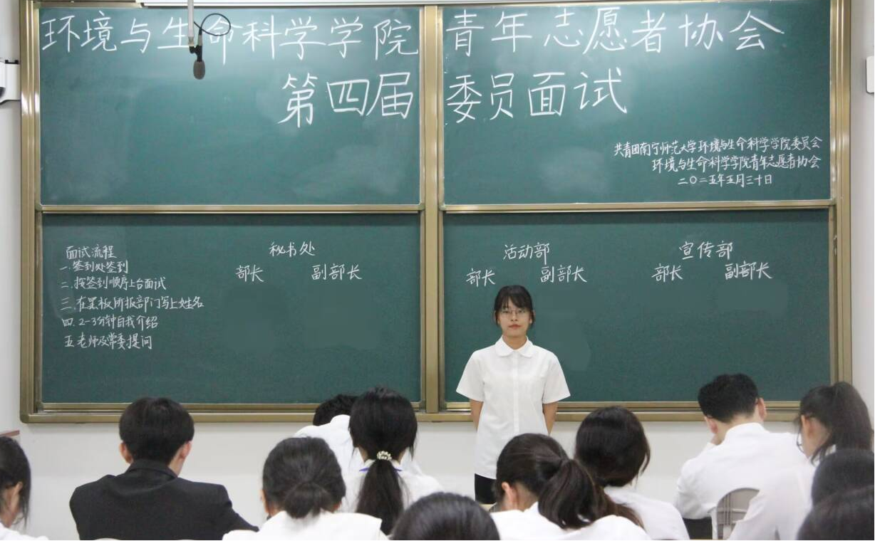 5月29日至30日,动漫18 青年志愿者协会在武鸣校区1号教学楼220教室、219教室顺利开展了第四届常委团、委员候选人面试,青协第三届骨干成员担任面试官。本次面试旨在选拔有能力、有热情的新一届骨干,为学院志愿服务工作注入新鲜血液,为青协未来发展储备力量。