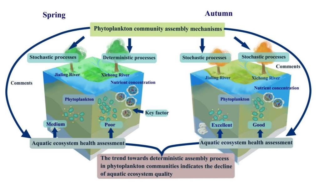 张拓副教授所在的科研团队进行了研究。本研究以嘉陵江为例,采用形态学鉴定方法、随机森林(RFM)、中性群落模型(NCM)和校正化随机率(MST)分析浮游植物组成、环境驱动因子和群落构建机制。研究结果将加深对嘉陵江浮游植物群落的认识,为嘉陵江水生态健康评估和有效的环境管理提供科学依据。