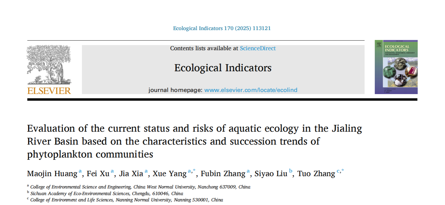 上述研究成果科研成果以“Evaluation ofthe current status and risks of aquatic ecology in the Jialing River Basin based on the characteristics and succession trends of phytoplankton communities.”为题,在环境科学与生态学领域著名期刊《Ecological Indicator》(中科院JCR双1区Top期刊,IF=7.0)上发表。西华师范大学环境科学与工程学院2022级本科生黄茂锦为第一作者(张拓副教授原单位指导的本科生),动漫18