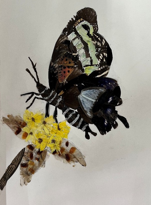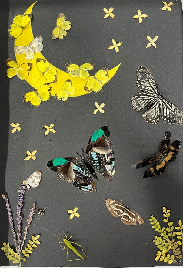 实习的最后阶段,同学们进行了昆虫和鱼类标本的鉴定、制作以及耗材与归档管理工作。同时,各班特别制作了一幅昆虫画。通过此次活动,2023级生物科学专业的同学们对标本制作流程有了清晰的认识,实践能力得到进一步锻炼,深刻体会到知识沉淀与整理的重要性。