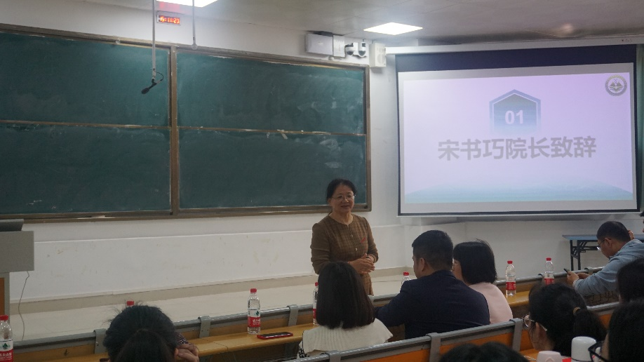 院长宋书巧致辞。首先宋院长对返校的优秀校友表示热烈的欢迎,并向2024届毕业生送出毕业寄语,嘱咐大家认真听取校友的经验。接着,参会的优秀校友张荣海,刘强凤,覃剑林依次上台发言,分享各自成长经历,为学弟学妹们提供了宝贵的经验和未来职业规划的指导。经验分享结束后,交流会进入互动环节,现场同学积极向校友请教毕业相关问题,校友热情地给出解答。