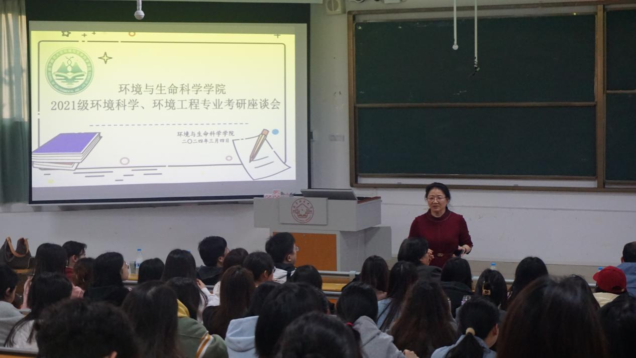 会议伊始,宋书巧院长针对考研的“考”与“不考”分别提出看法与建议,鼓励大家踊跃报考。随后,副院长张新英深刻解读当前形势下的考研政策,通过考研方向的选择以及如何备考、初试、复试等方面的讲解,为同学们提供清晰明了的考研指导。紧接着由2021级环境科学、环境工程专业各班班主任依次上台发言,针对同学们的考研薄弱科目外语和数学以及就业等方面提供指导,并表达了对同学们的殷切期盼。最后梁洲辅老师勉励同学们,唯有努力奋斗,方能不负韶华。