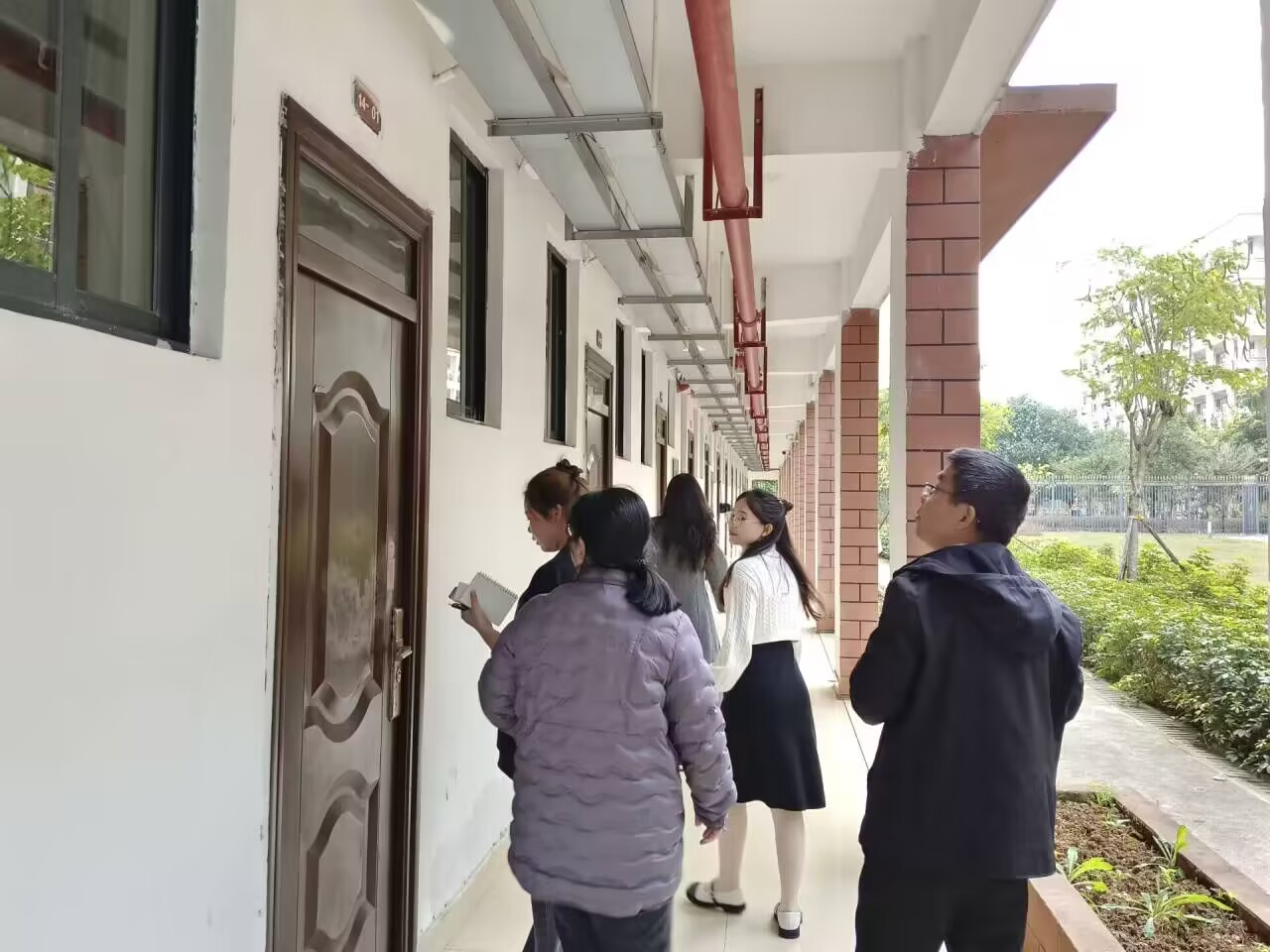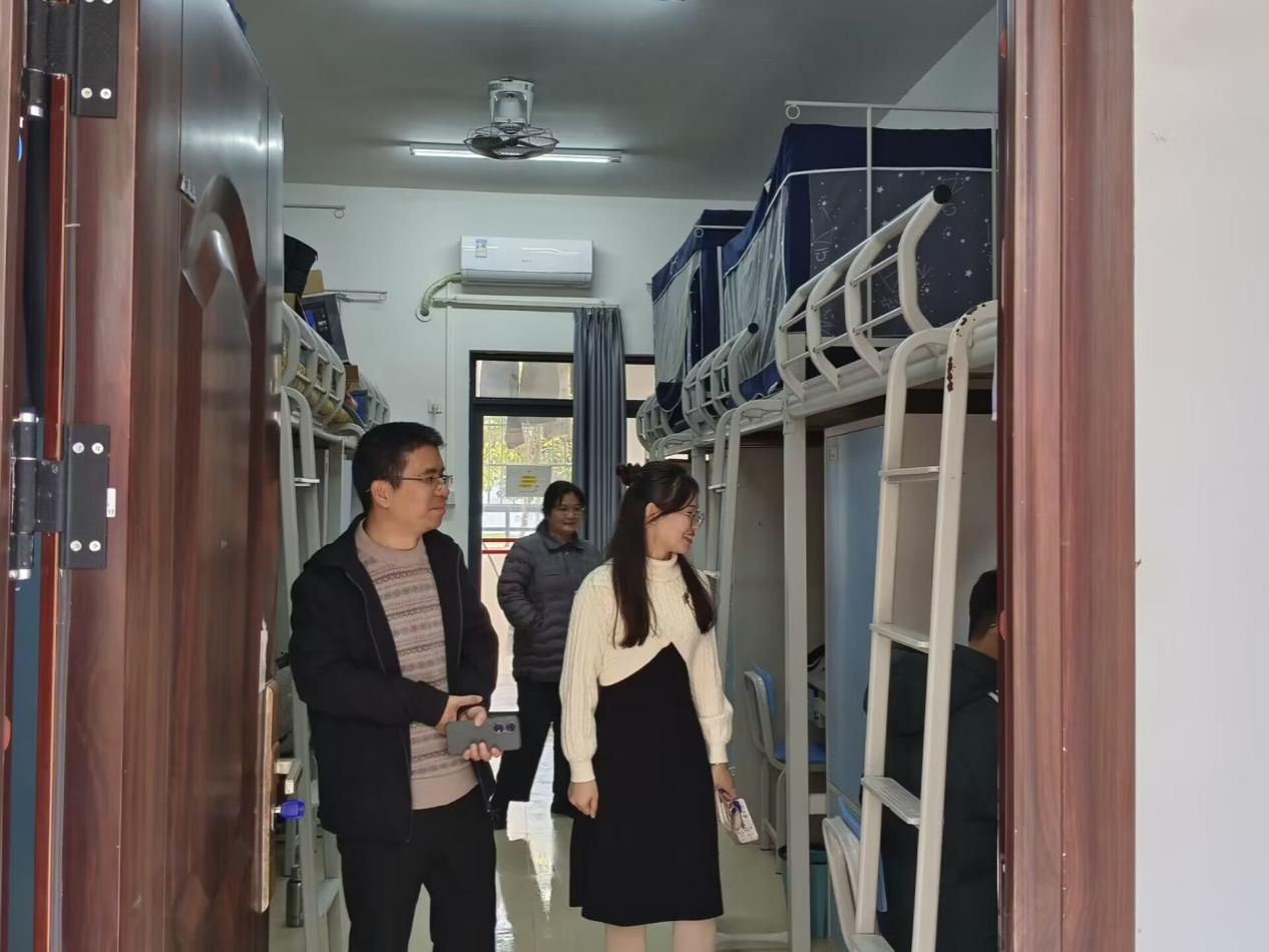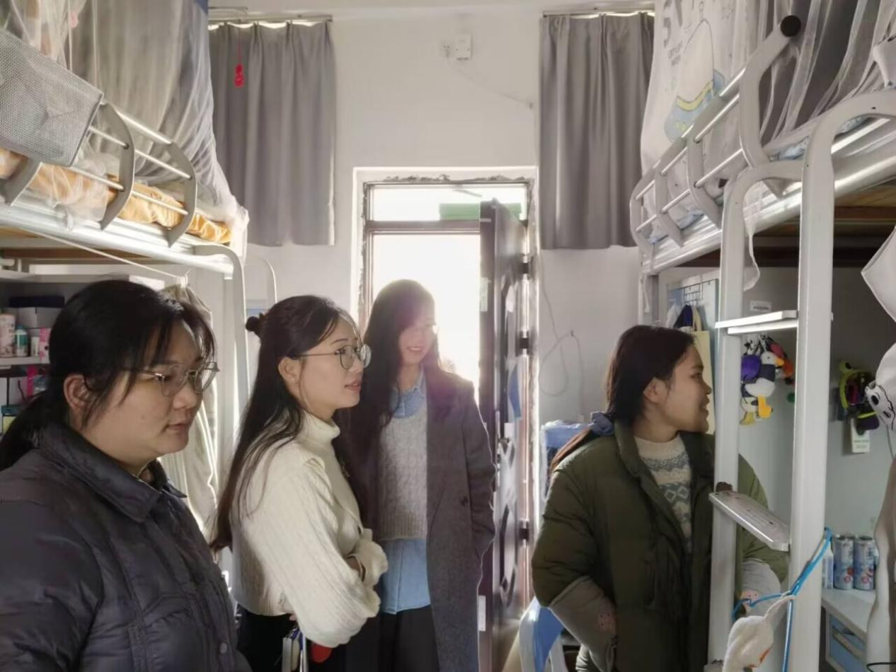 宿舍内务检查活动开始时,领导老师们依次走访各个宿舍,对宿舍的内务情况进行检查、记录以及点评指正。对于内务整洁的宿舍,领导老师们给予表扬和鼓励;对于检查过程中发现的内务问题,领导老师们给予指正并引导学生认真对待内务问题。