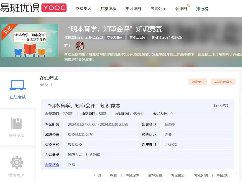 易班分站于2024年3月26日至3月30日组织开展“明本育学,知审会评”线上知识竞赛活动。参与对象为动漫18