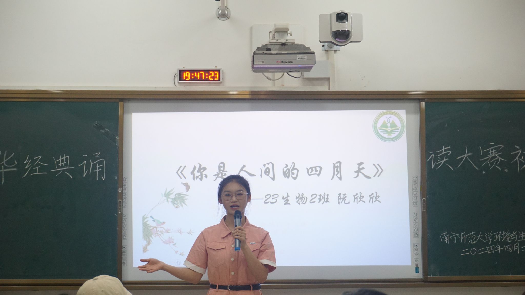 圆满举办了以“墨香诗韵扬风雅,传颂经典咏华夏”为主题的中华经典诵读大赛。本次大赛于2024年4月28日晚,在武鸣一号教学楼113教室举行。参加本次比赛的人员有参赛选手、工作人员以及由研究生许秋怡学姐,主持队、体育部、权益部、组织部各两名队员共同组成的评委团。本次比赛不仅是一次对学生口语表达能力和文学素养的检阅,更是对中华优秀传统文化传播力的有力展现。