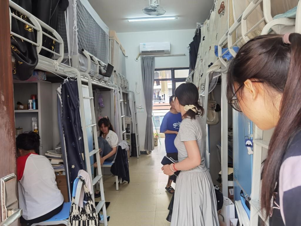 学工办组织开展了学生公寓走访活动,辅导员刘雅楠、龚炜婷于2024年4月30日上午前往学生公寓进行走访。