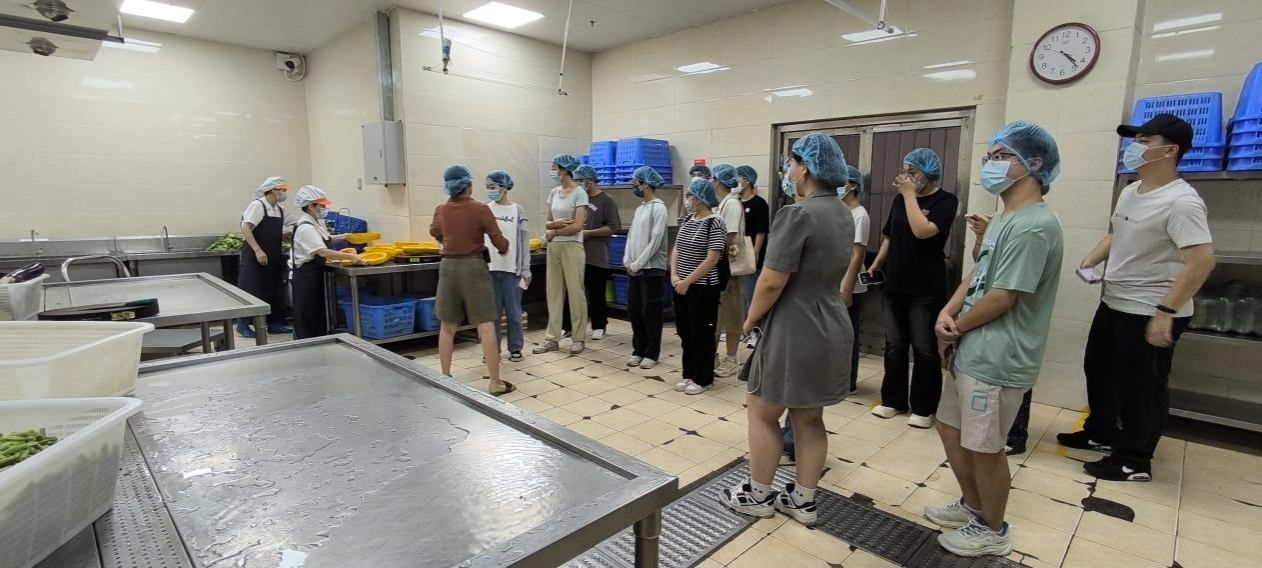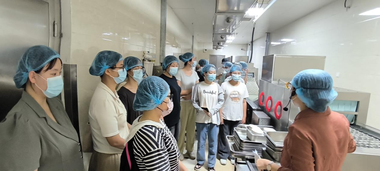 师生代表深入学校自营食堂内部,了解食堂的工作岗位、工作制度、工作流程等。从走廊到洗碗间,从备餐间到厨房,干净整洁,体现了食堂工作人员对全校师生健康安全,食品安全的保护与维护;从肉类禽类的处理到菜刀的使用摆放,处处体现了食堂工作人员井井有条的工作秩序和一心为师生打造良好用餐体验的工作态度。