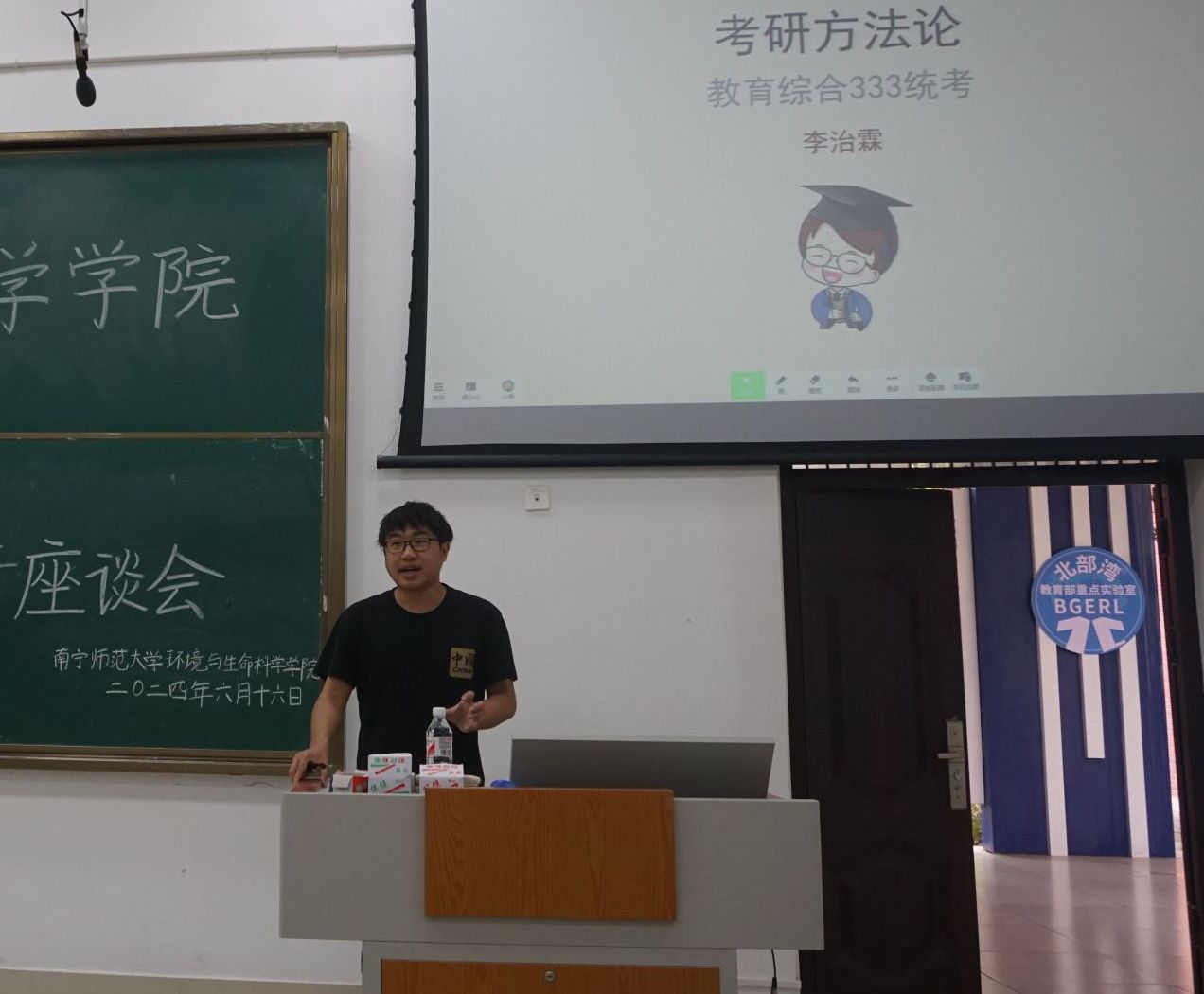 于6月16日上午在地海楼B109教室举办分享会为同学们提供一个交流学习的平台。此次座谈会特邀2019级学科教学(生物)研究生校友、现任南宁市第二十中学初中生物备课组组长李治霖进行考研和就业经验分享。