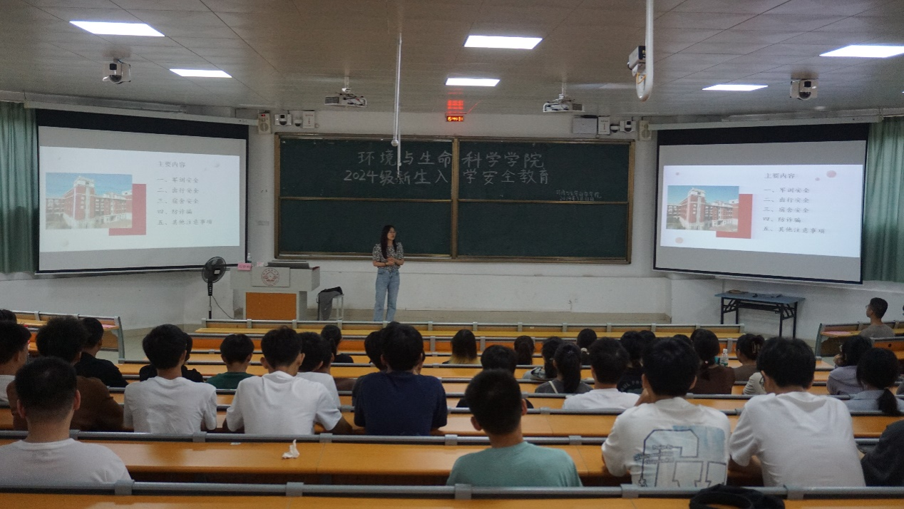 于2024年8月31日下午开展了新生入学安全教育讲座。主讲人为辅导员刘雅楠和韦旖扬老师。