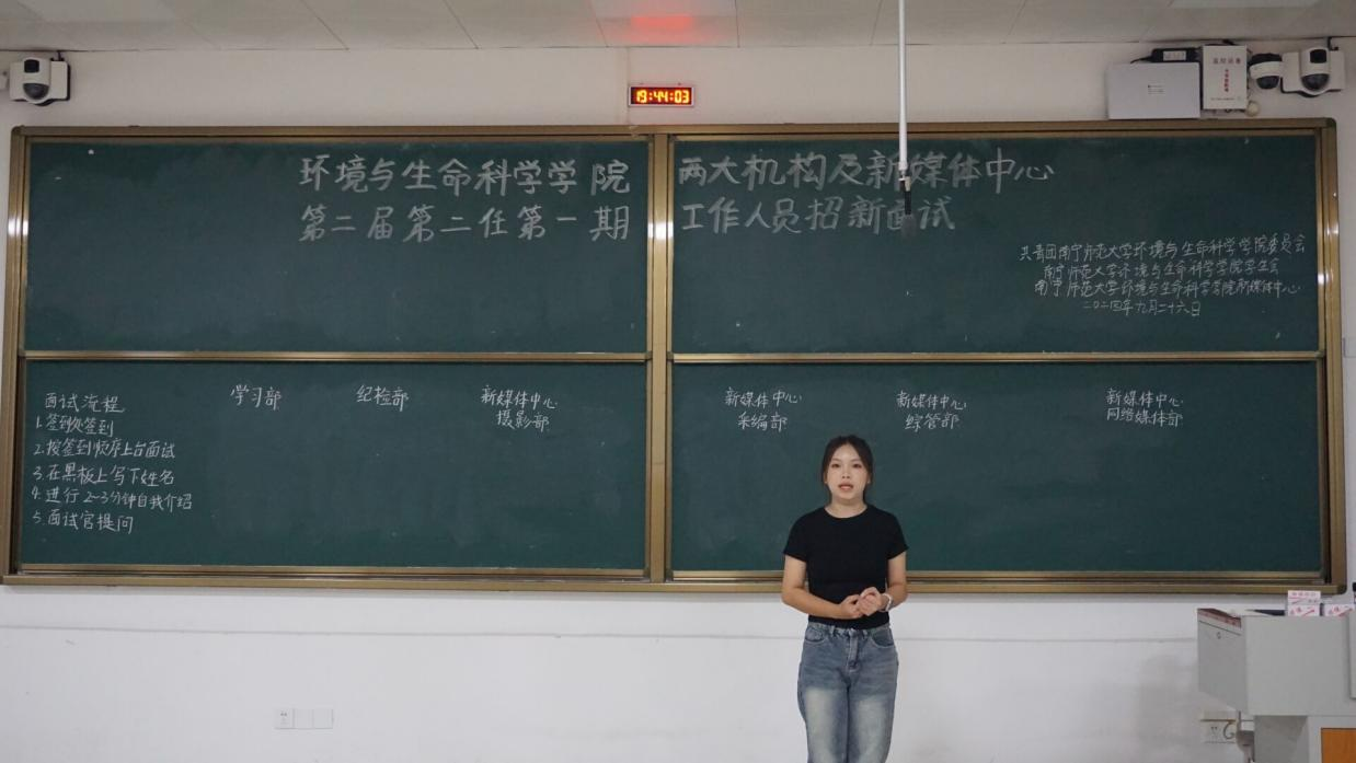 新生们按照签到的先后顺序逐一上台进行面试,作简单自我介绍的同时,充分展示自己的才华与能力。有的同学通过精彩的演讲展现了自己的表达力,有的同学则通过独特的作品展示了自己的创造力。担任面试官的学长学姐们认真负责,从专业知识、团队协作能力、沟通技巧、创新思维等,全面考察了新生们的综合素质。