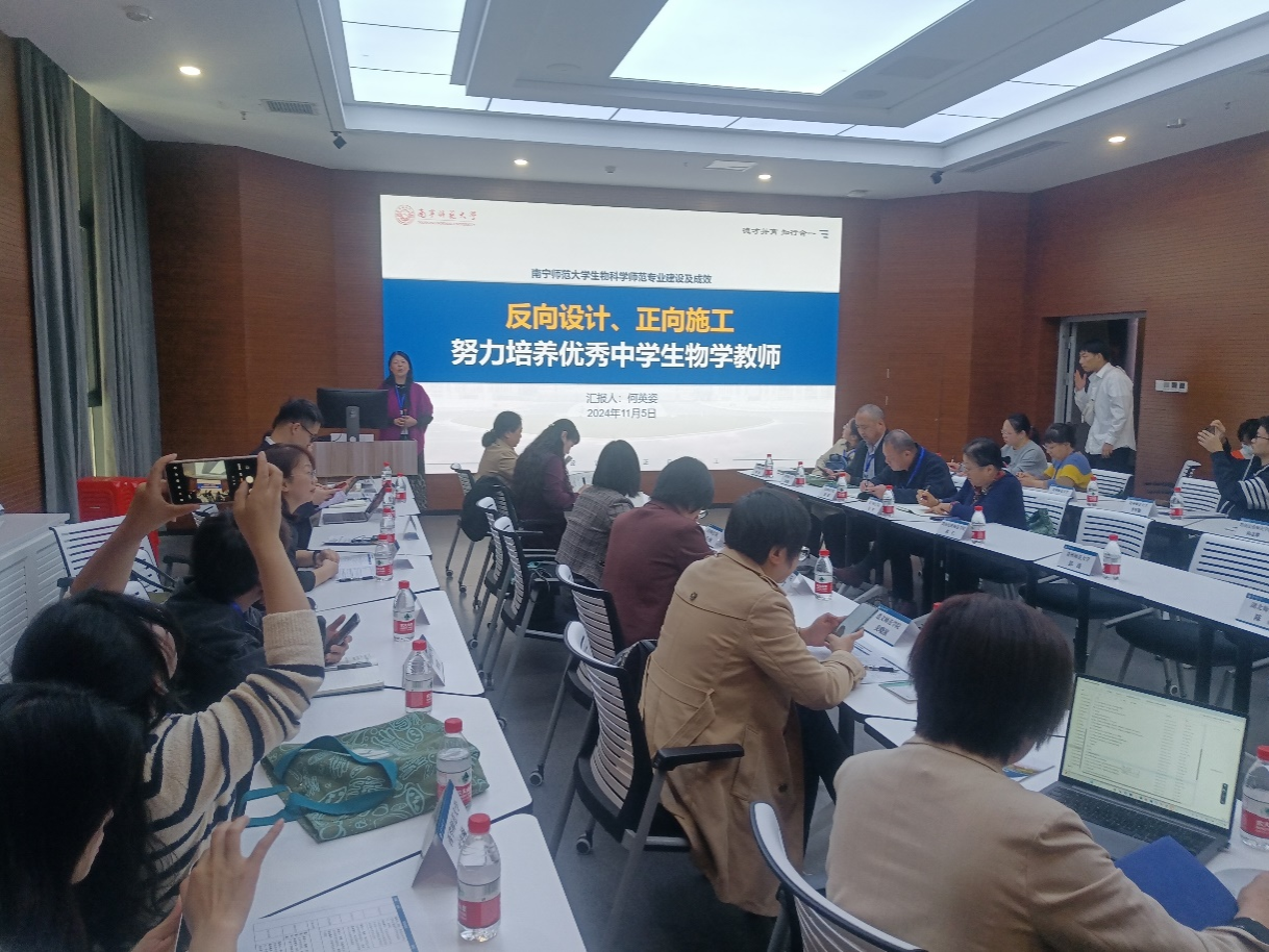 何英姿院长做了“反向设计,正向施工,努力培养优秀中学生物学教师”的报告,并与到会的各院校代表围绕生物学师范教育卓越人才的培养、课程体系的完善建设,生物学教育未来发展方向等展开交流与讨论。