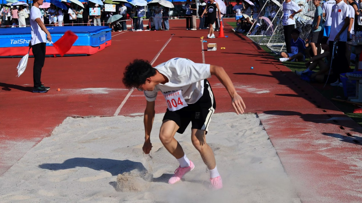 运动员们同样全力以赴,他们在赛道上疾驰如风,在沙坑前奋力一跃,在投掷区释放力量。每一次冲刺和跳跃都凝聚了他们的汗水与努力,彰显了新时代青年积极进取和团结协作的精神风貌。