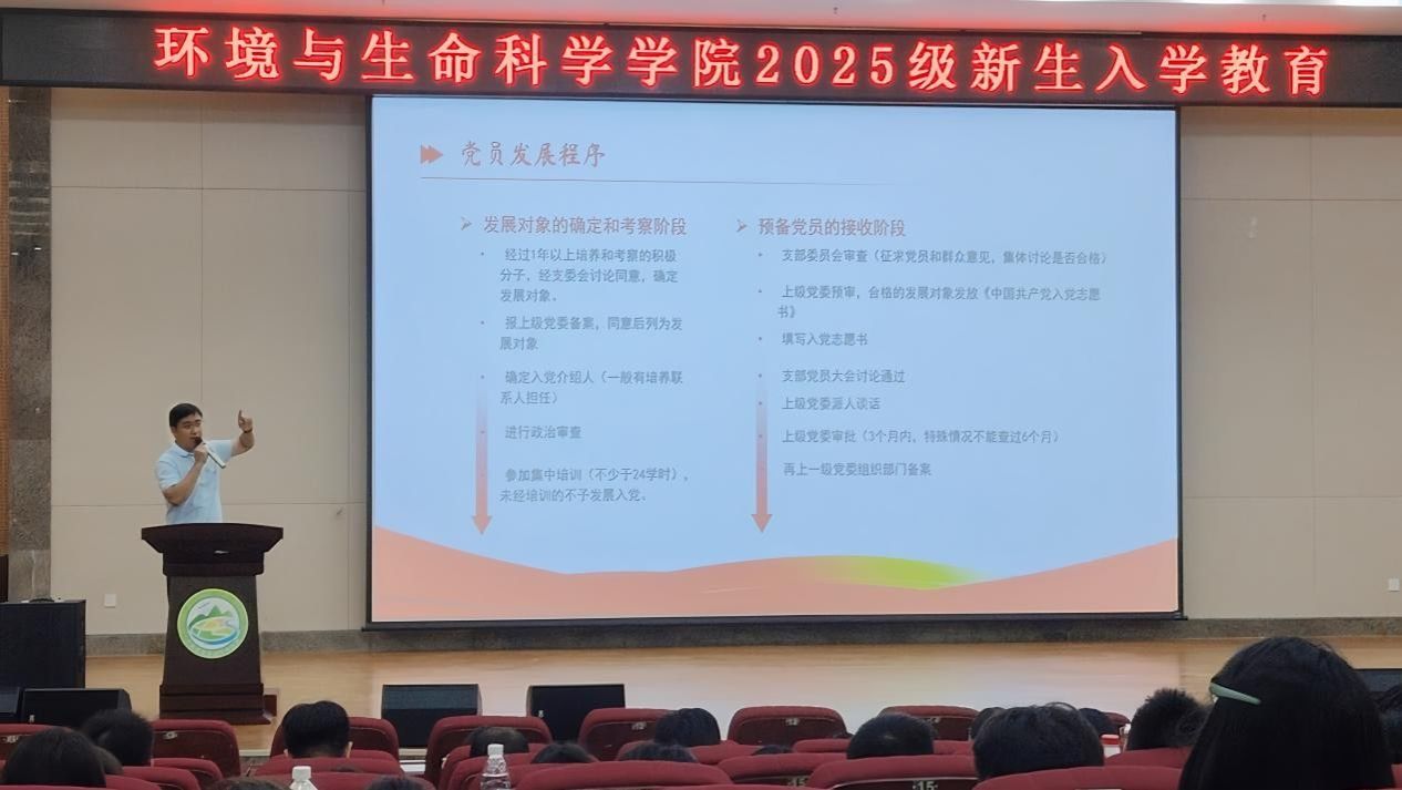 会上,普胤杰详细解读党的基本知识,通过分享优秀党员的先进事迹,用榜样力量激发青年共鸣。他还深入剖析不同类型的入党动机,着重强调端正入党动机与入党态度的重要性,引导新生树立正确入党动机;此外,他还系统讲解了入党全流程及具体要求,让新生对入党有了更全面的认识。