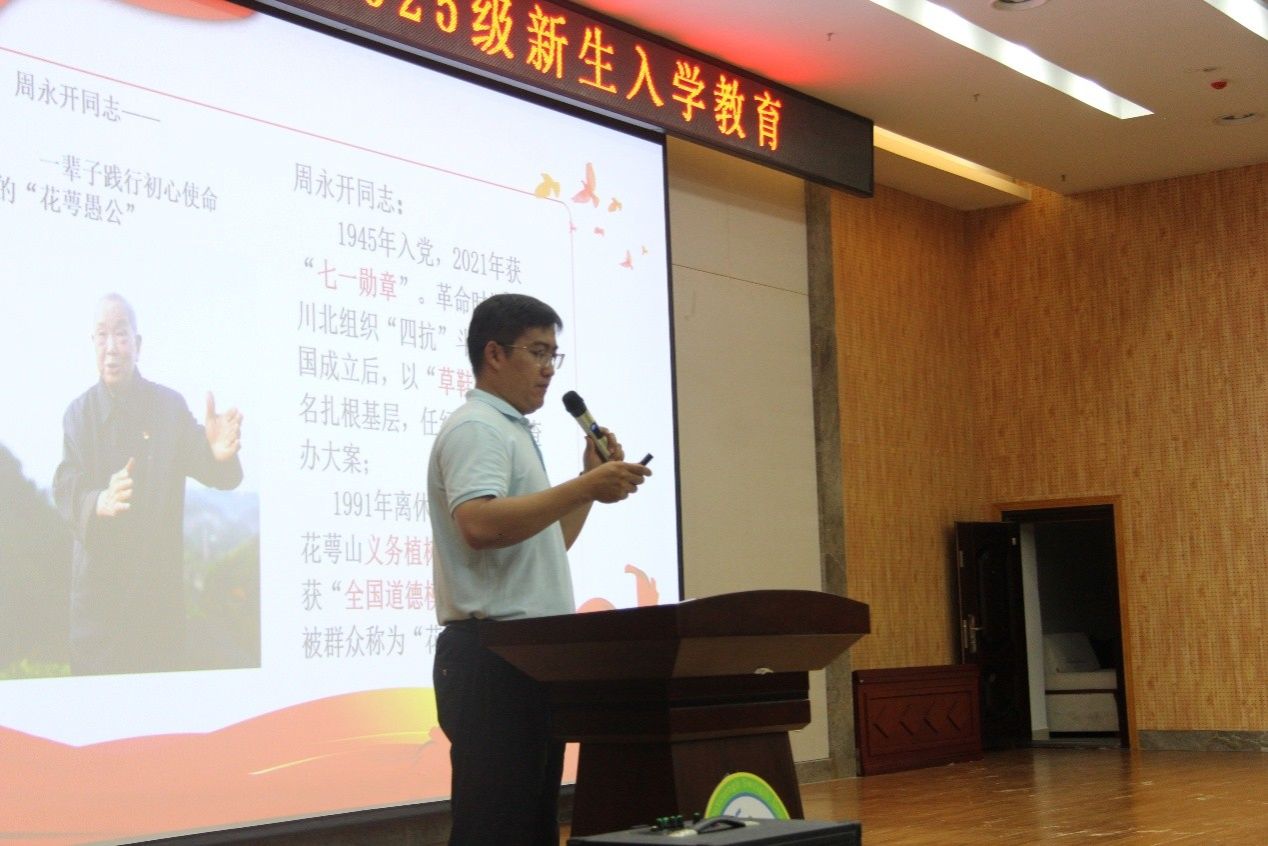 “爱校荣校、爱院荣院”主题教育与理想信念教育讲座上,何英姿以学院发展历程为切入点,介绍办学定位、师资力量与学科优势,解读各专业“理论+实践”融合的学科特色。她以数据的形式向新生展示了专业科研水平、毕业生就业质量,增强了新生对学院的认同感与归属感。