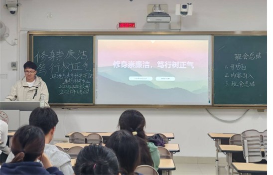 班会上,主持人首先围绕廉洁主题,进行了全面且深入讲解,强调廉洁不仅是中华民族的传统美德,更是新时代青年的必备素养,要求全体学生自觉遵守校纪校规,坚决杜绝学术不端、校园贿赂等行为。结合古今廉洁楷模案例,生动的讲述廉洁修身的重要意义,引导学生明辨是非,树立“以廉为荣,以贪为耻”的价值观念。