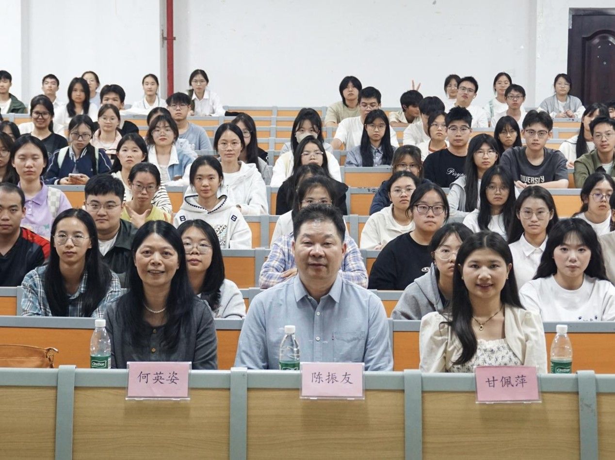 讲座伊始,院长何英姿对陈振友老师的莅临表示欢迎,并详细介绍了其在教育领域的卓越成就。随后,陈振友老师结合自身从教经验,围绕师范生职业发展路径展开系统讲解。他通过拆解“正”、“赢”和“输”三个汉字,深入阐释教师应具备的核心素养与职业智慧,强调“上进守正”的做人准则和“危机意识、高效沟通、珍视时间”的职业素养,引导同学们树立正确的职业价值观。