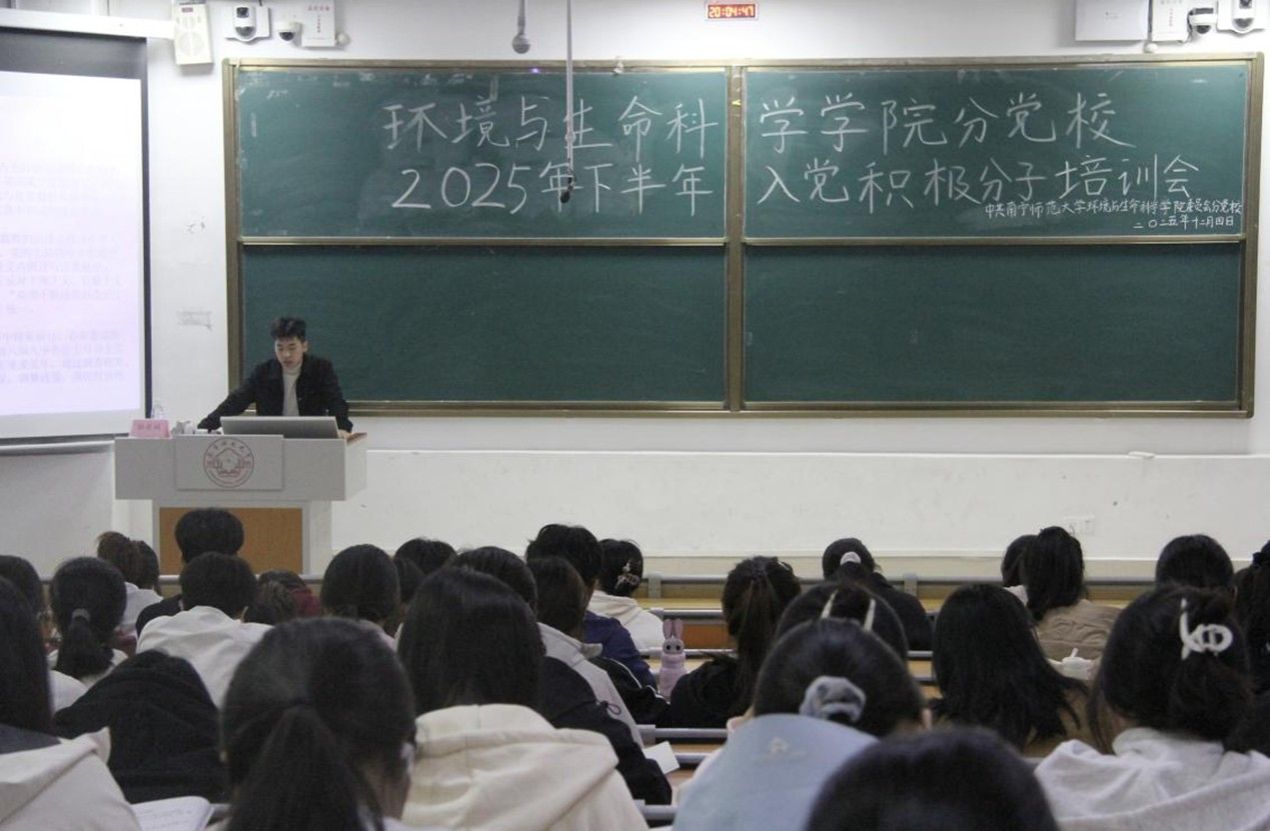 辅导员骆亮城主讲,参会人员为2025年下半年入党积极分子及学院各专业党支部人员。