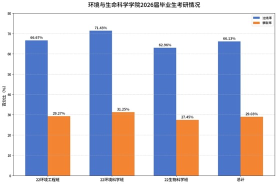 数据显示,学院非定向毕业生共计124人,62人报名参加考研,41人顺利上线,考研过线率达66.13%。各班级升学成效亮眼、多点开花:22级环境科学班表现突出,以31.25%的录取率位列全院第一,该班32名毕业生中14人参与考研,10人成功上岸;22级环境工程班稳步奋进,41名毕业生里21人报考,12人顺利录取,录取率29.27%;22级生物科学班成果喜人,51名毕业生中有27人备战考研,14人圆梦升学,录取率27.45%。