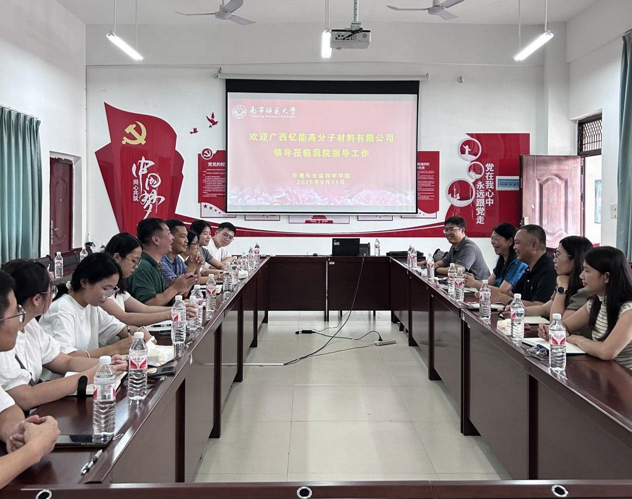 2025年09月11日,广西钇能高分子材料有限公司总经理陈闵富、企业技术总监杨芳显等携动漫18 7名优秀毕业生返校,开展校企交流座谈会。学院参会的有院长何英姿、党委副书记刘启满、组织员普胤杰、团委书记刘雅楠、辅导员甘佩萍及企业科技特派员莫莉萍。